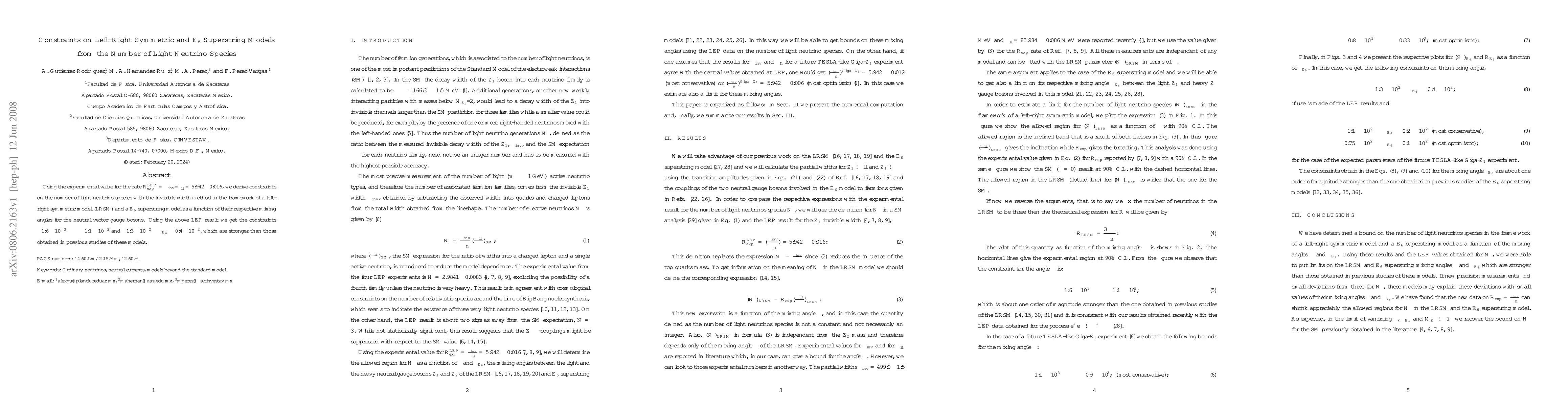This paper derives new constraints on left-right symmetric and $E_6$ superstring models based on the LEP experimental value for the rate $R^{LEP}_{exp}$. The study finds tighter bounds on the number of light neutrino species, improving previous results.