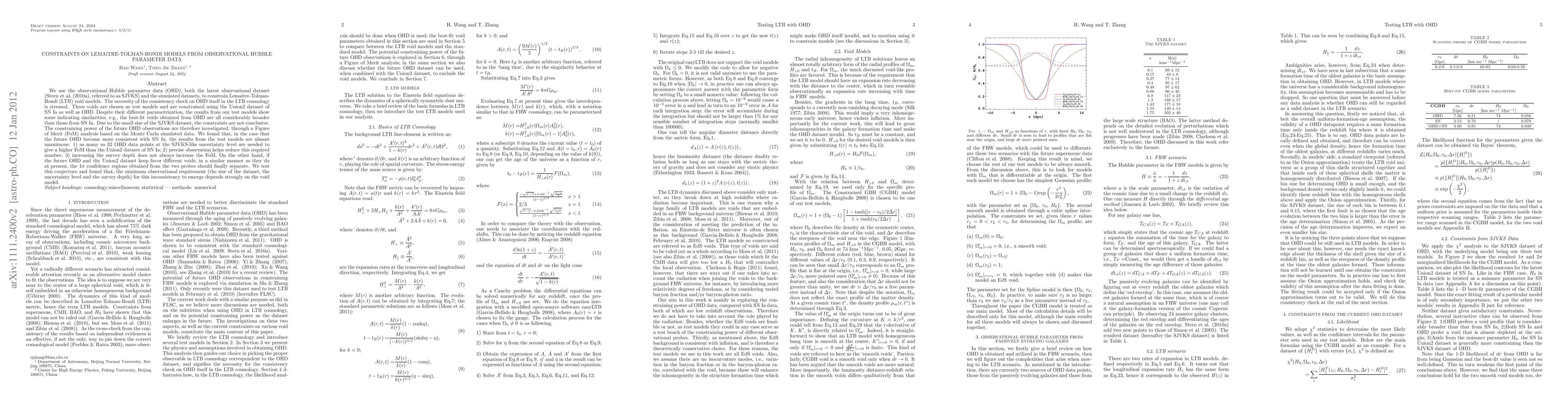 We use the observational Hubble parameter data (OHD), both the latest observational dataset (Stern et al. 2010, referred to as SJVKS) and the simulated datasets, to constrain Lema\^{\i}tre-Tolman-Bondi (LTB) void models. The necessity of the consistency check on OHD itself in the LTB cosmology is stressed. Three voids are chosen as test models and are constrained using the Union2 dataset of SN Ia as well as OHD. Despite their different parametrization, the results from our test models show some indicating similarities, e.g., the best-fit voids obtained from OHD are all considerably broader than those from SN Ia. Due to the small size of the SJVKS dataset, the constraints are not conclusive. The constraining power of the future OHD observations are therefore investigated, through a Figure of Merit (FoM) analysis based on the Monte Carlo simulated data. We found that, in the case that the future OHD become more consistent with SN Ia, the results from the test models are almost unanimous: 1) as many as 32 OHD data points at the SJVKS-like uncertainty level are needed to give a higher FoM than the Union2 dataset of SN Ia; 2) precise observation helps reduce this required number; 3) increasing the survey depth does not always increase the FoM. On the other hand, if the future OHD and the Union2 dataset keep favor different voids, in a similar manner as they do at present, the 1{\sigma} confidence regions obtained from the two probes should finally separate. We test this conjecture and found that, the minimum observational requirement (the size of the dataset, the uncertainty level and the survey depth) for this inconsistency to emerge depends strongly on the void model.