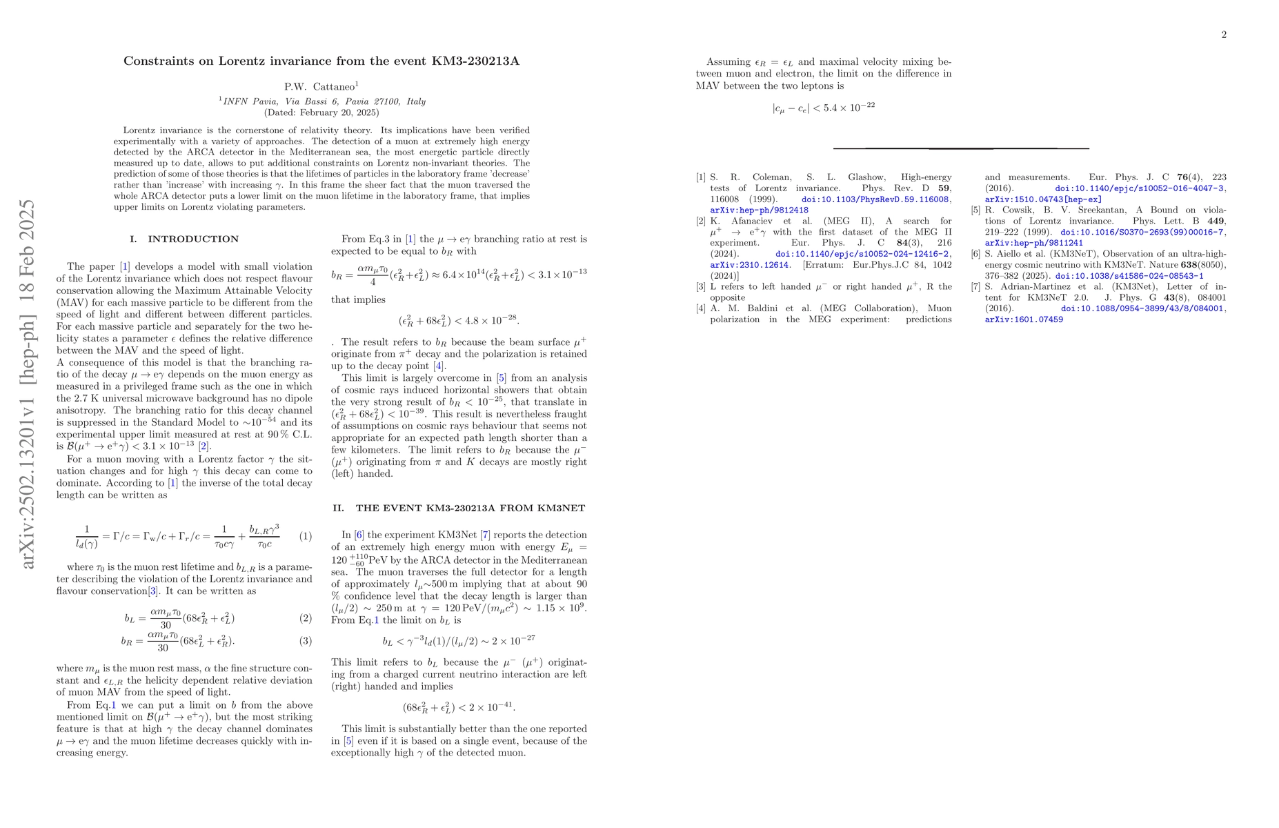 The research combines theoretical modeling of Lorentz violation with an analysis of a unique high-energy muon event, providing improved constraints on Lorentz invariance violation parameters compared to previous studies.