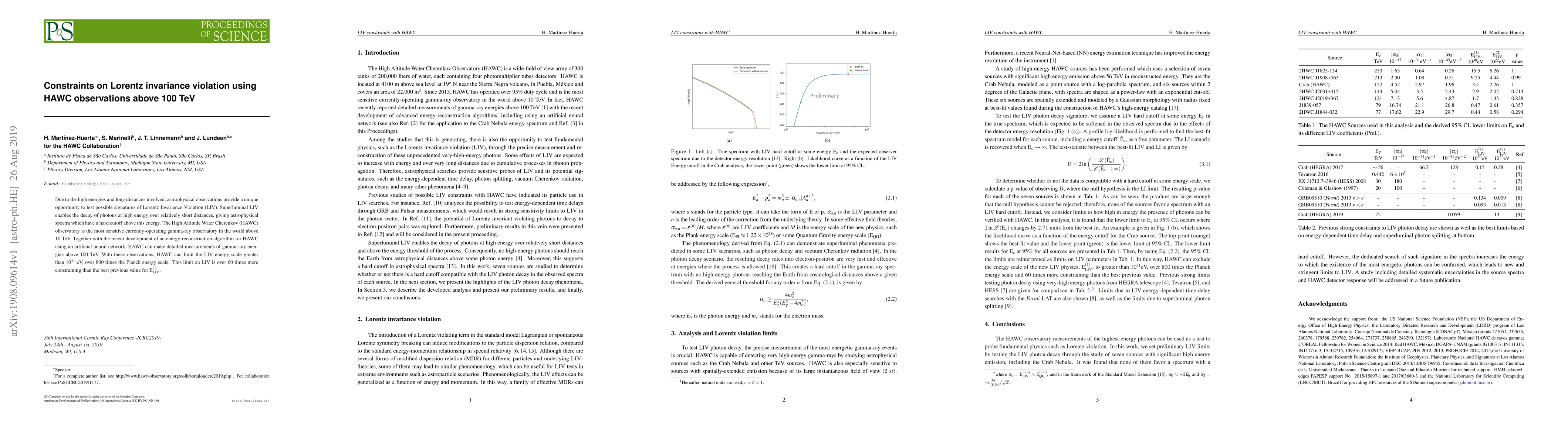 The HAWC observatory has used high-energy gamma-ray observations above 100 TeV to set stringent limits on Lorentz Invariance Violation, constraining the LIV energy scale to greater than $10^{31}$ eV, significantly improving upon previous constraints. This result provides a powerful test of fundamental physics at energies far beyond the Planck scale.