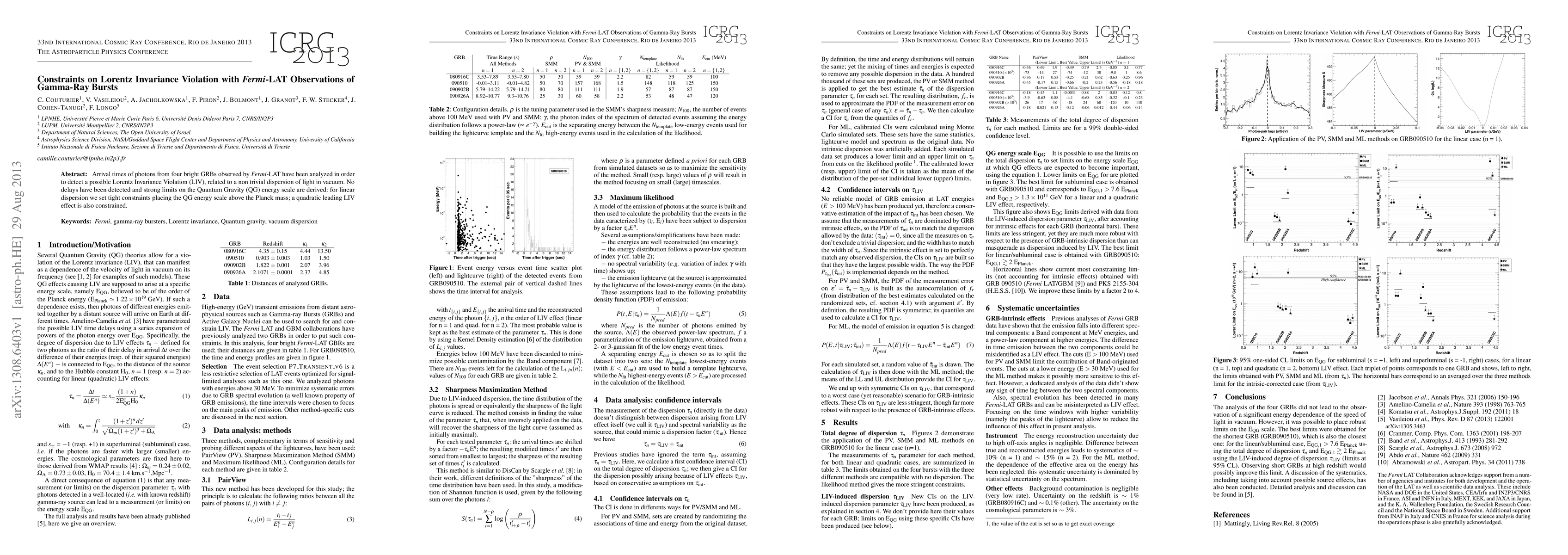 This paper investigates potential Lorentz Invariance Violation (LIV) using Fermi-LAT observations of four bright Gamma-Ray Bursts, deriving stringent constraints on the Quantum Gravity (QG) energy scale, finding no detectable delays and placing the QG energy scale above the Planck mass.
