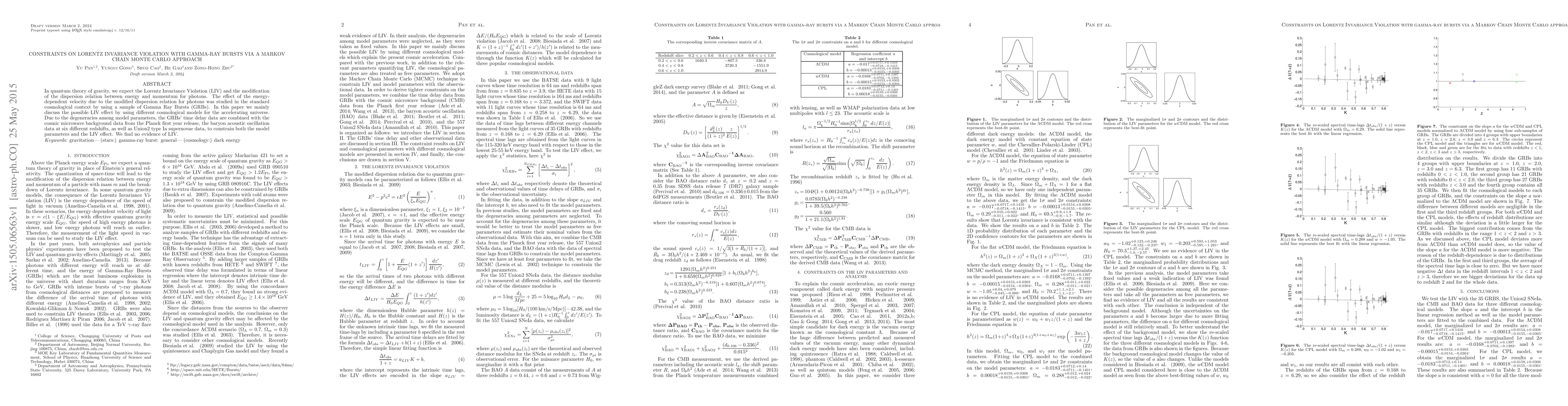 This paper investigates Lorentz Invariance Violation (LIV) using gamma-ray bursts (GRBs) and a Markov Chain Monte Carlo approach, combining GRB time delay data with other cosmological datasets. The study finds no evidence of LIV in the context of different cosmological models.