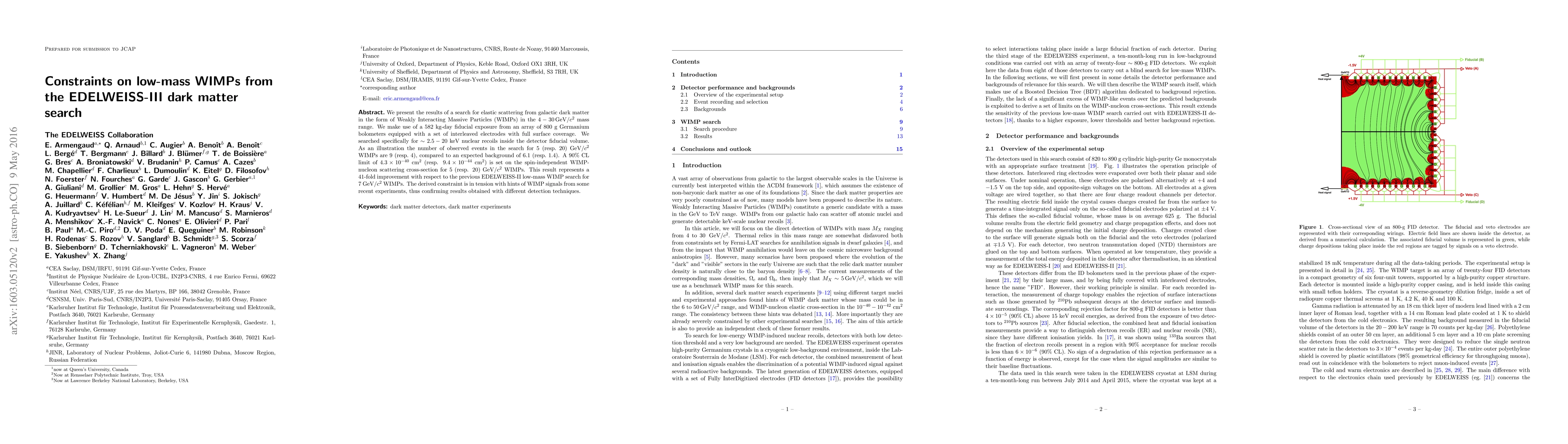 We present the results of a search for elastic scattering from galactic dark matter in the form of Weakly Interacting Massive Particles (WIMPs) in the 4-30 GeV/$c^2$ mass range. We make use of a 582 kg-day fiducial exposure from an array of 800 g Germanium bolometers equipped with a set of interleaved electrodes with full surface coverage. We searched specifically for $\sim 2.5-20$ keV nuclear recoils inside the detector fiducial volume. As an illustration the number of observed events in the search for 5 (resp. 20) GeV/$c^2$ WIMPs are 9 (resp. 4), compared to an expected background of 6.1 (resp. 1.4). A 90% CL limit of $4.3\times 10^{-40}$ cm$^2$ (resp. $9.4\times 10^{-44}$ cm$^2$) is set on the spin-independent WIMP-nucleon scattering cross-section for 5 (resp. 20) GeV/$c^2$ WIMPs. This result represents a 41-fold improvement with respect to the previous EDELWEISS-II low-mass WIMP search for 7 GeV/$c^2$ WIMPs. The derived constraint is in tension with hints of WIMP signals from some recent experiments, thus confirming results obtained with different detection techniques.
