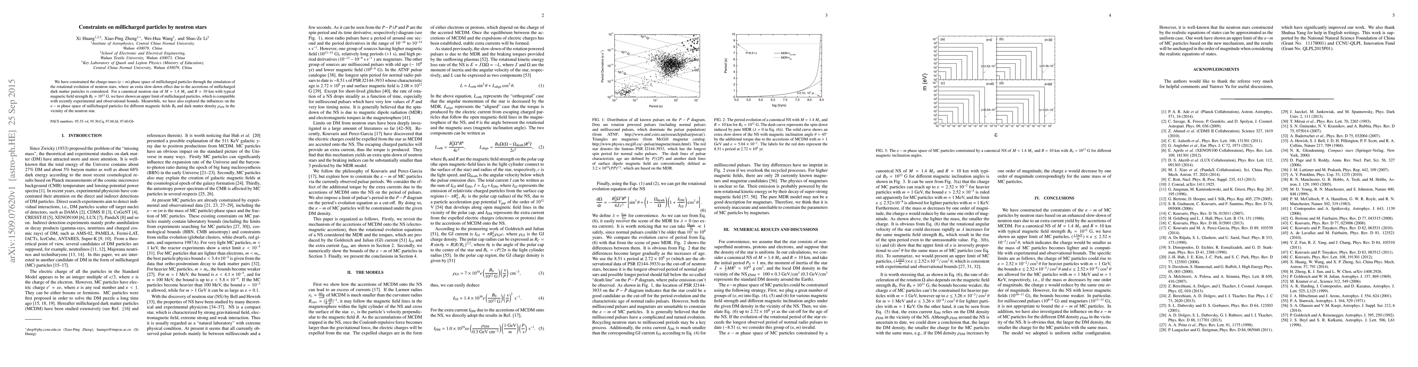 This paper constrains the charge-mass phase space of millicharged particles by simulating neutron star rotational evolution, revealing an upper limit compatible with experimental bounds. It also examines how varying magnetic fields and dark matter density affect these constraints.