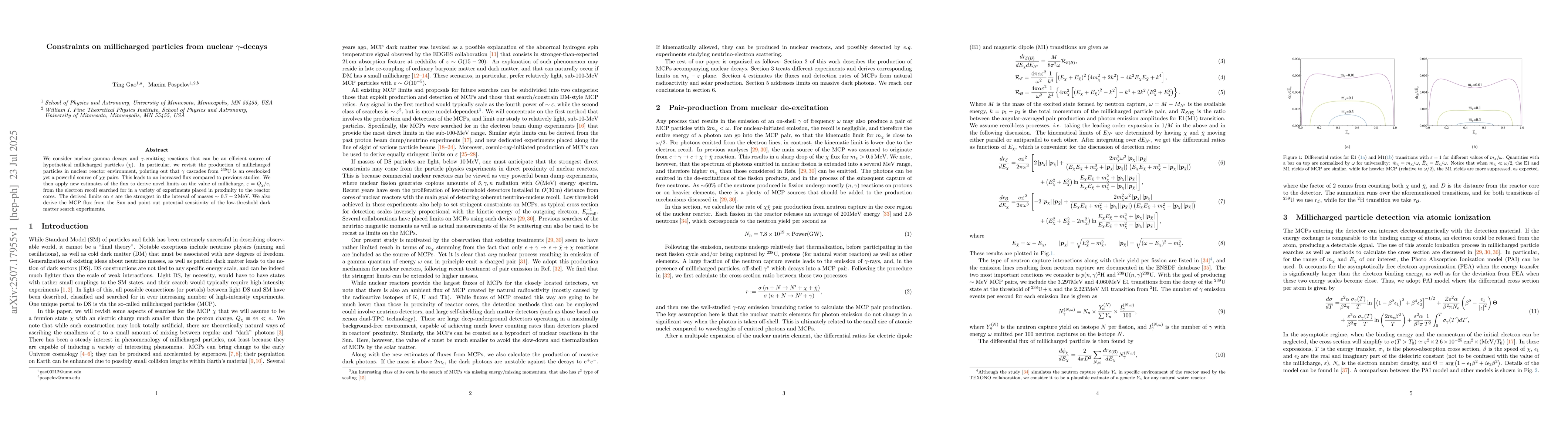 We consider nuclear gamma decays and $\gamma$-emitting reactions that can be an efficient source of hypothetical millicharged particles ($\chi$). In particular, we revisit the production of millicharged particles in nuclear reactor environment, pointing out that $\gamma$ cascades from $^{239}$U is an overlooked yet a powerful source of $\chi\bar\chi$ pairs. This leads to an increased flux compared to previous studies. We then apply new estimates of the flux to derive novel limits on the value of millicharge, $\varepsilon = Q_\chi/e$, from the electron recoil searched for in a variety of experiments placed in proximity to the reactor cores. The derived limits on $\varepsilon$ are the strongest in the interval of masses $\sim 0.7-2 $\,MeV. We also derive the MCP flux from the Sun and point out potential sensitivity of the low-threshold dark matter search experiments.