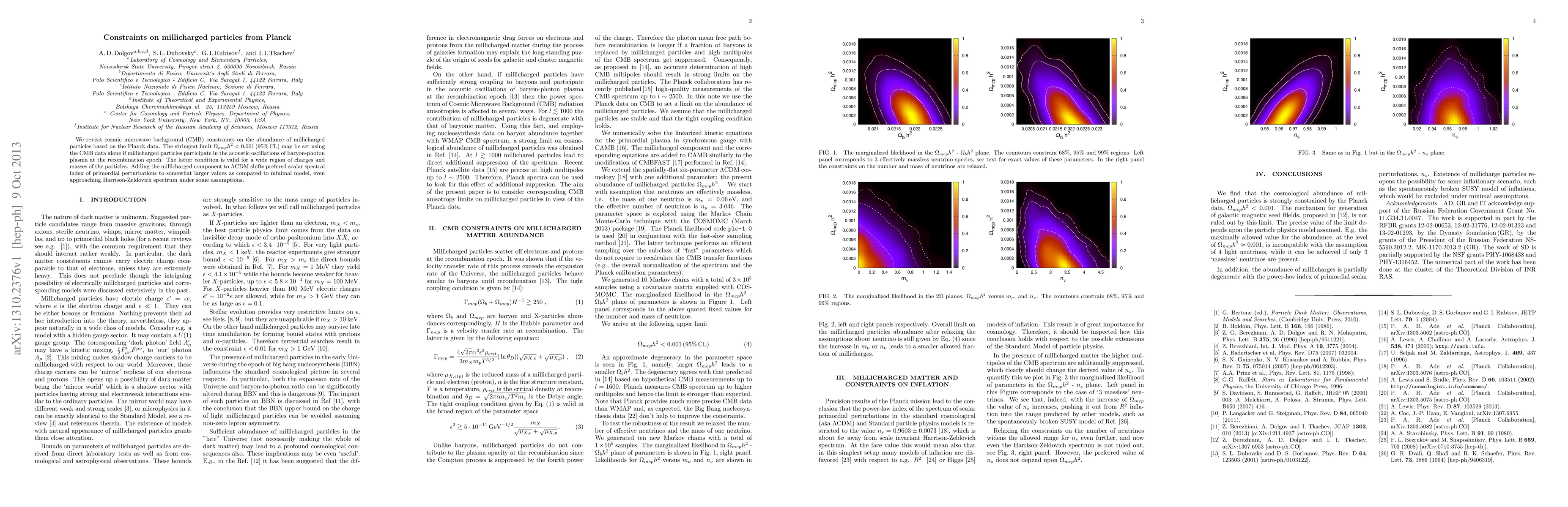 This paper revisits constraints on millicharged particles from Planck data, finding a stringent limit of Omega_{mcp}h^2 < 0.001 (95% CL) based on CMB data. The study suggests that millicharged particles could affect the acoustic oscillations in the baryon-photon plasma, shifting the scalar spectral index of primordial perturbations towards larger values.
