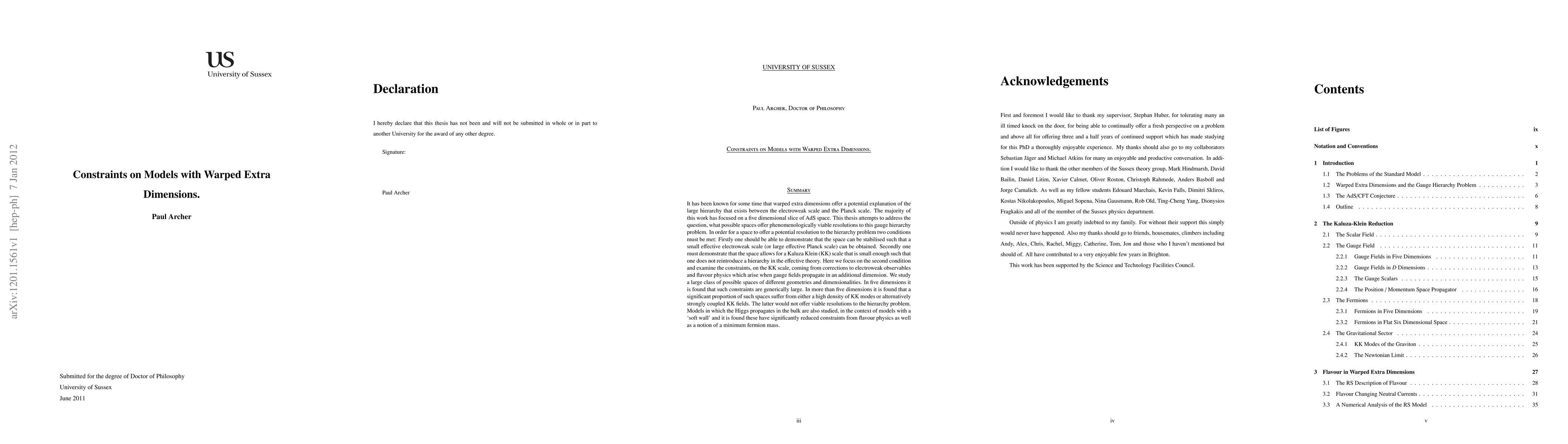 Research investigates warped extra dimensions for resolving the electroweak scale hierarchy problem, finding constraints on Kaluza-Klein scales that make some models unviable, while others with 'soft walls' reduce flavour physics constraints.