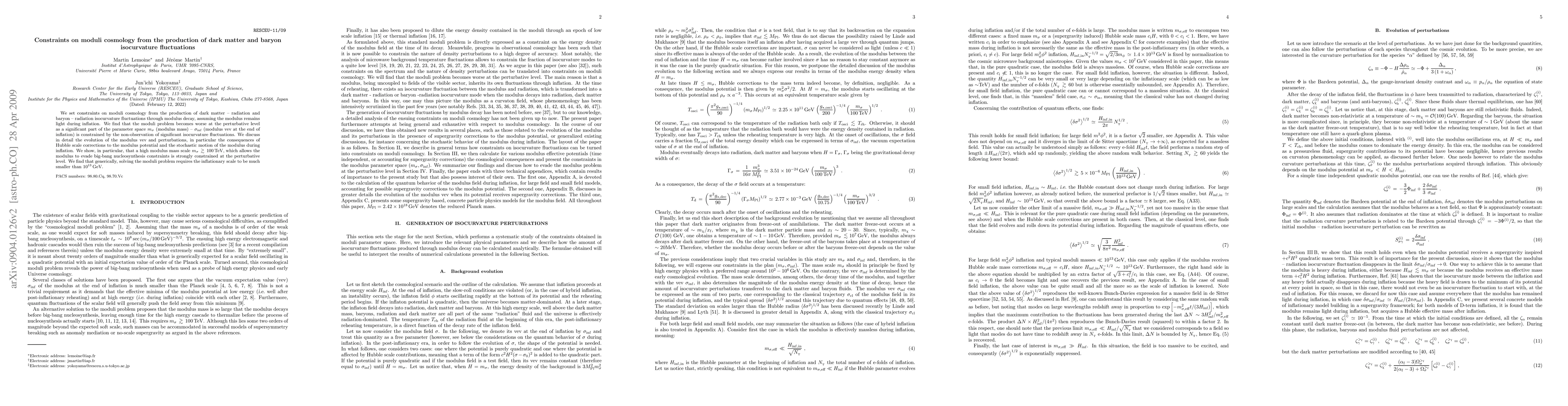 Researchers have found that moduli cosmology is severely constrained by the lack of dark matter and baryon isocurvature fluctuations, requiring inflationary scales smaller than 10^13 GeV to solve the 'moduli problem'.
