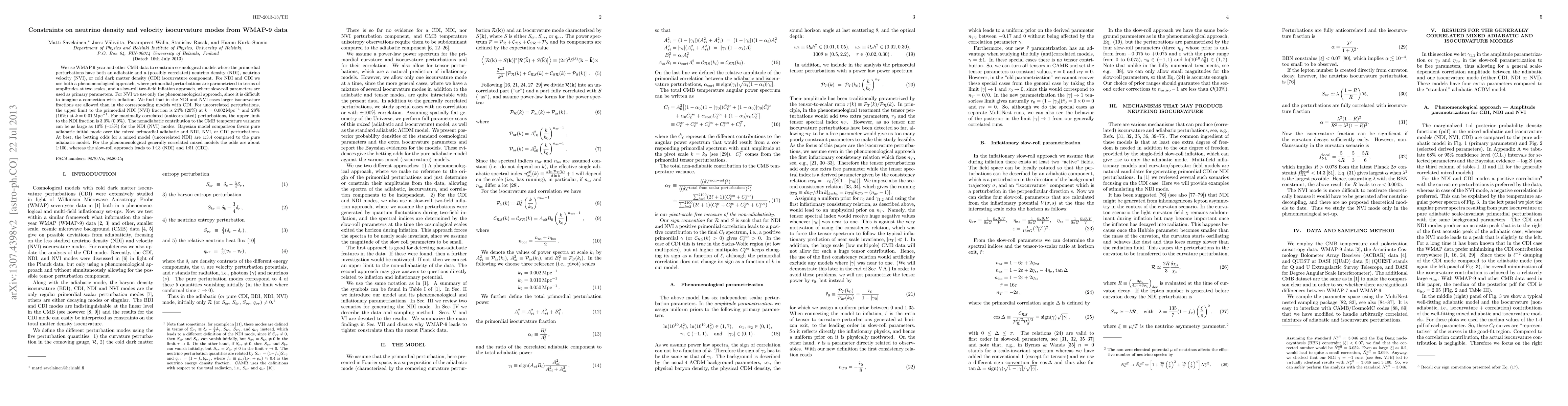 We use WMAP 9-year and other CMB data to constrain cosmological models where the primordial perturbations have both an adiabatic and a (possibly correlated) neutrino density (NDI), neutrino velocity (NVI), or cold dark matter density (CDI) isocurvature component. For NDI and CDI we use both a phenomenological approach, where primordial perturbations are parametrized in terms of amplitudes at two scales, and a slow-roll two-field inflation approach, where slow-roll parameters are used as primary parameters. For NVI we use only the phenomenological approach, since it is difficult to imagine a connection with inflation. We find that in the NDI and NVI cases larger isocurvature fractions are allowed than in the corresponding models with CDI. For uncorrelated perturbations, the upper limit to the primordial NDI (NVI) fraction is 24% (20%) at k = 0.002 Mpc^{-1} and 28% (16%) at k = 0.01 Mpc^{-1}. For maximally correlated (anticorrelated) perturbations, the upper limit to the NDI fraction is 3.0% (0.9%). The nonadiabatic contribution to the CMB temperature variance can be as large as 10% (-13%) for the NDI (NVI) modes. Bayesian model comparison favors pure adiabatic initial mode over the mixed primordial adiabatic and NDI, NVI, or CDI perturbations. At best, the betting odds for a mixed model (uncorrelated NDI) are 1:3.4 compared to the pure adiabatic model. For the phenomenological generally correlated mixed models the odds are about 1:100, whereas the slow-roll approach leads to 1:13 (NDI) and 1:51 (CDI).
