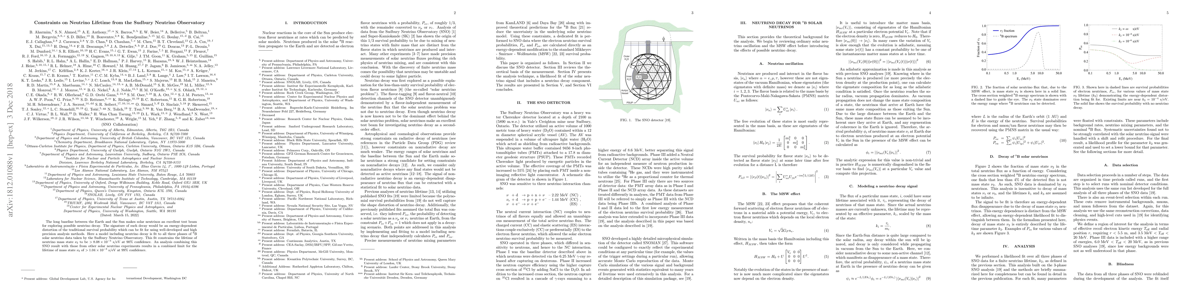 The Sudbury Neutrino Observatory analyzed $^8$B solar neutrino data to explore neutrino decay, setting a constraint on the lifetime of neutrino mass state $\nu_2$ to be greater than $8.08 \times 10^{-5}$ s/eV at 90% confidence. Combining this with other solar neutrino experiments results in a combined limit of greater than $1.04 \times 10^{-3}$ s/eV at 99% confidence.