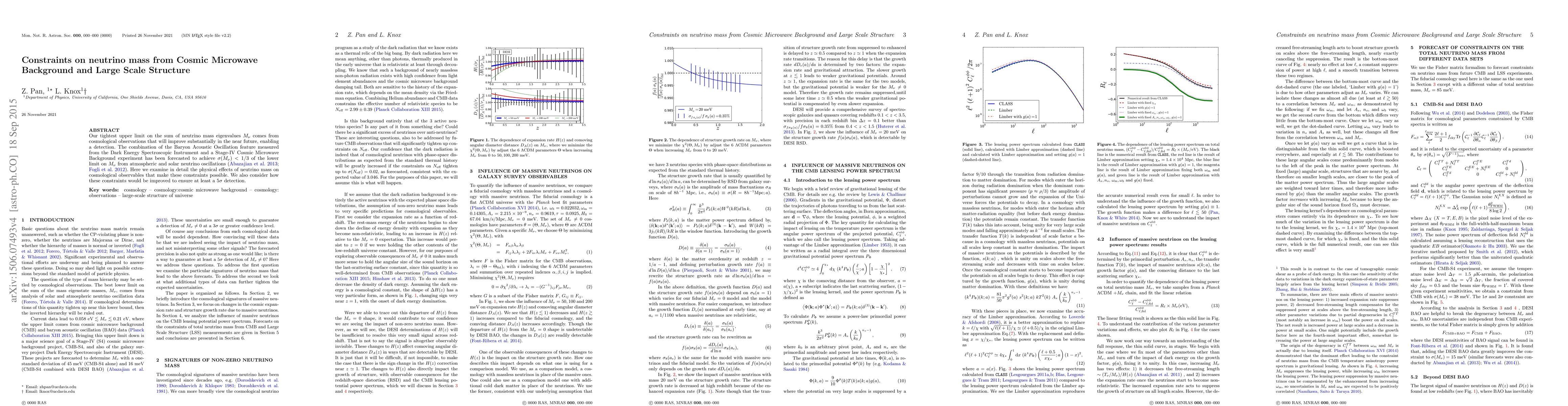 This paper provides the tightest upper limit on the sum of neutrino mass eigenvalues, $M_\nu$, derived from cosmological observations, including the Baryon Acoustic Oscillation feature and Cosmic Microwave Background data. Future improvements in these measurements are expected to enable a detection, aiming for a $5\sigma$ confidence level.