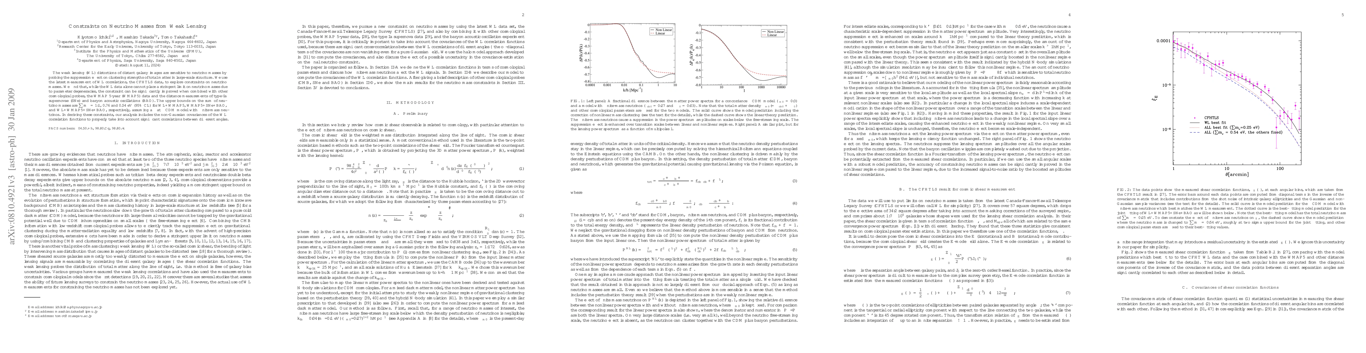 This paper investigates neutrino masses using weak lensing data from the CFHTLS, finding that while weak lensing alone is insufficient for stringent limits due to parameter degeneracies, combining it with WMAP5, SNe, and BAO data significantly improves constraints, yielding upper bounds of 1.1, 0.76, and 0.54 eV (95% CL) respectively.