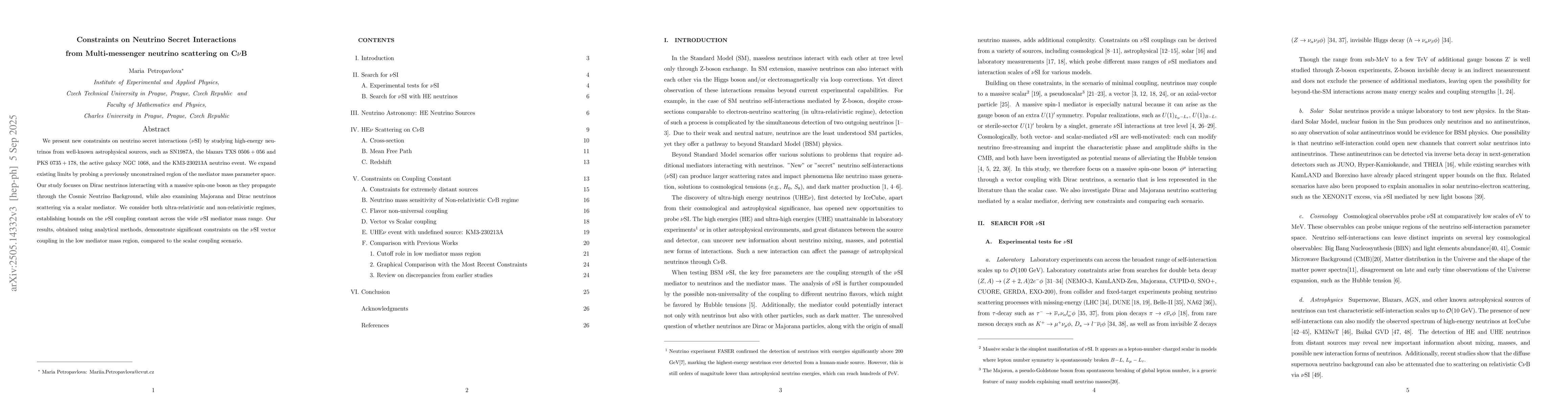New research constraints neutrino secret interactions using high-energy astrophysical sources like supernovae and blazars, setting limits on a massive spin-one boson mediator mass range.