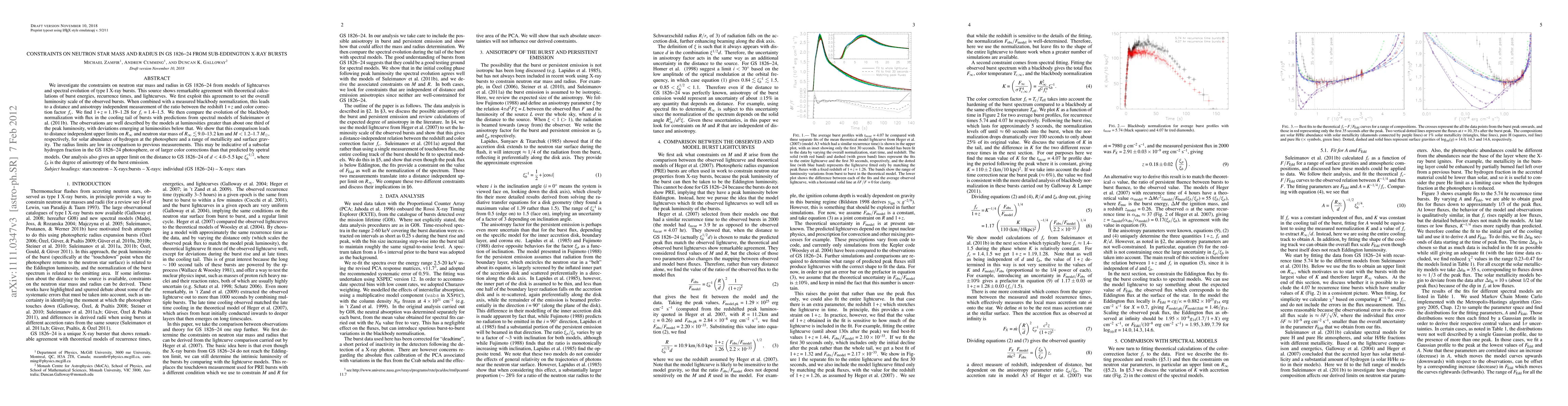 Researchers studied X-ray bursts from GS 1826-24 to constrain neutron star mass and radius, finding upper limits of about 9 km for the radius and 1.7 solar masses for the star's mass.