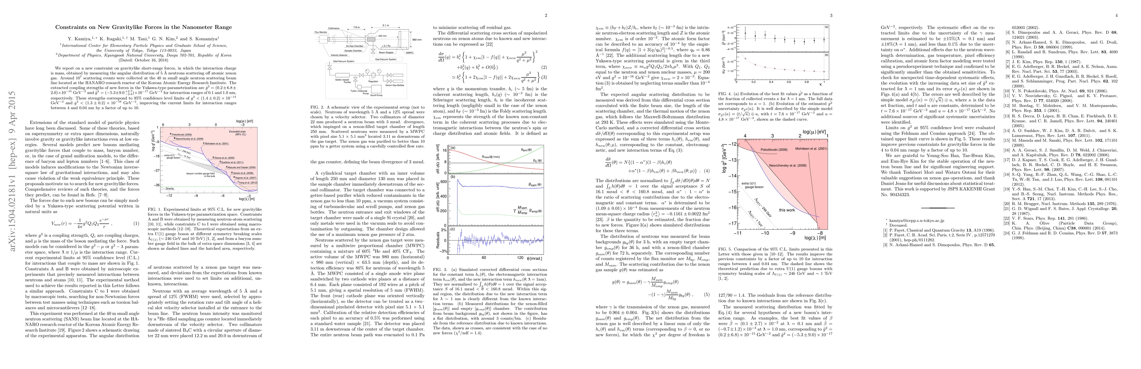 This study constrains gravitylike short-range forces using neutron scattering off xenon gas, achieving improved limits on Yukawa-type interaction strengths by a factor of up to 10 for ranges between 0.04 and 4 nm. The new limits are g^2 < (1.4 ± 0.2) × 10^-14 GeV^-2 and g^2 < (1.3 ± 0.2) × 10^-16 GeV^-2.