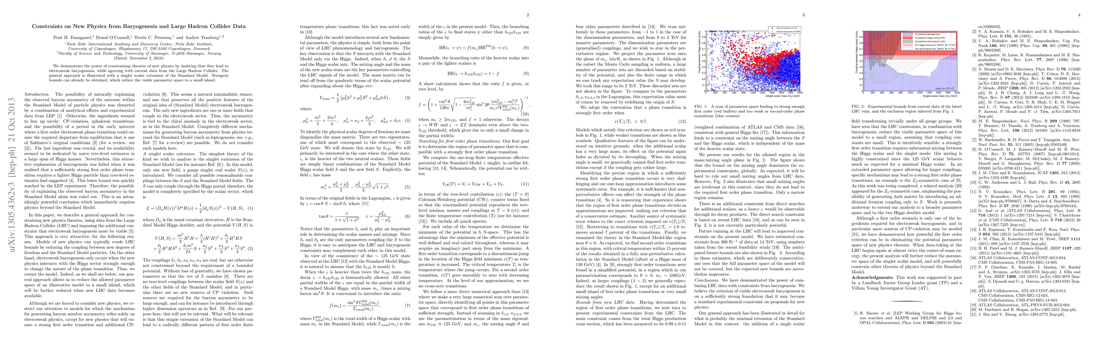 We demonstrate the power of constraining theories of new physics by insisting that they lead to electroweak baryogenesis, while agreeing with current data from the Large Hadron Collider. The general approach is illustrated with a singlet scalar extension of the Standard Model. Stringent bounds can already be obtained, which reduce the viable parameter space to a small island.