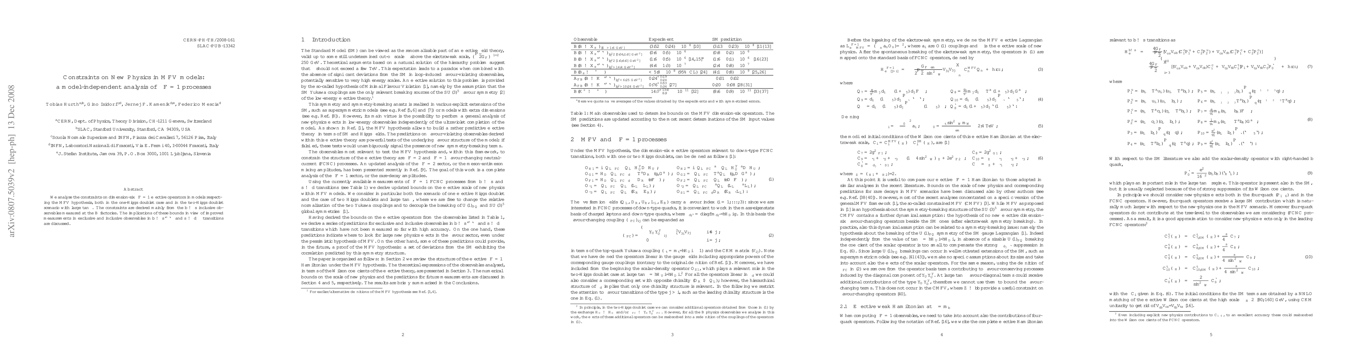 We analyse the constraints on dimension-six Delta F=1 effective operators in models respecting the MFV hypothesis, both in the one-Higgs doublet case and in the two-Higgs doublet scenario with large tan beta. The constraints are derived mainly from the b -> s inclusive observables measured at the B factories. The implications of these bounds in view of improved measurements in exclusive and inclusive observables in b -> s l^+ l^- and s -> d nu nubar transitions are discussed.