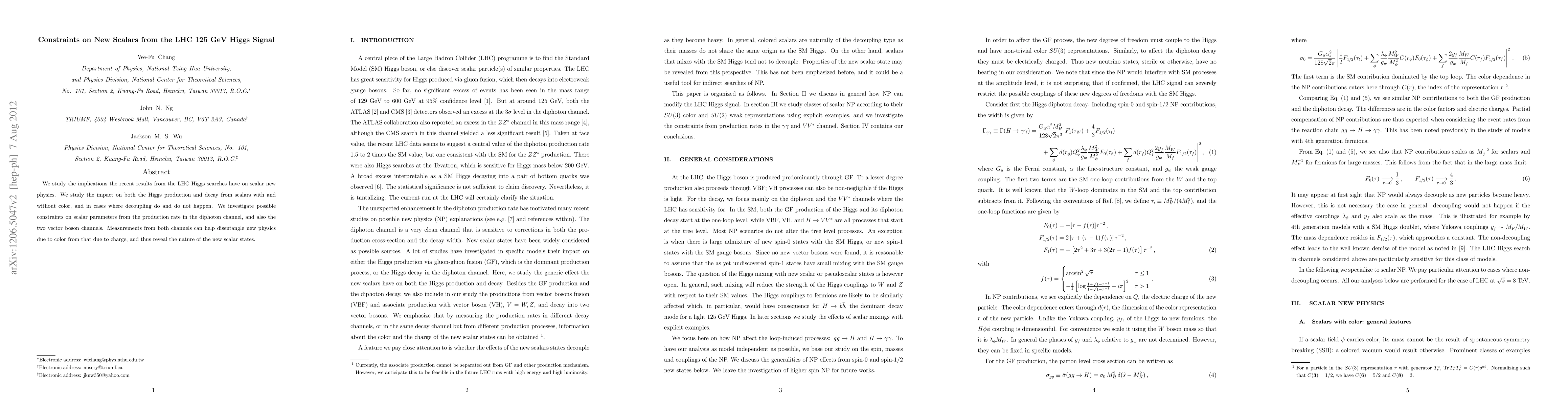 We study the implications the recent results from the LHC Higgs searches have on scalar new physics. We study the impact on both the Higgs production and decay from scalars with and without colour, and in cases where decoupling do and do not happen. We investigate possible constraints on scalar parameters from the production rate in the diphoton channel, and also the two vector boson channels. Measurements from both channels can help disentangle new physics due to colour from that due to charge, and thus reveal the nature of the new scalar states.