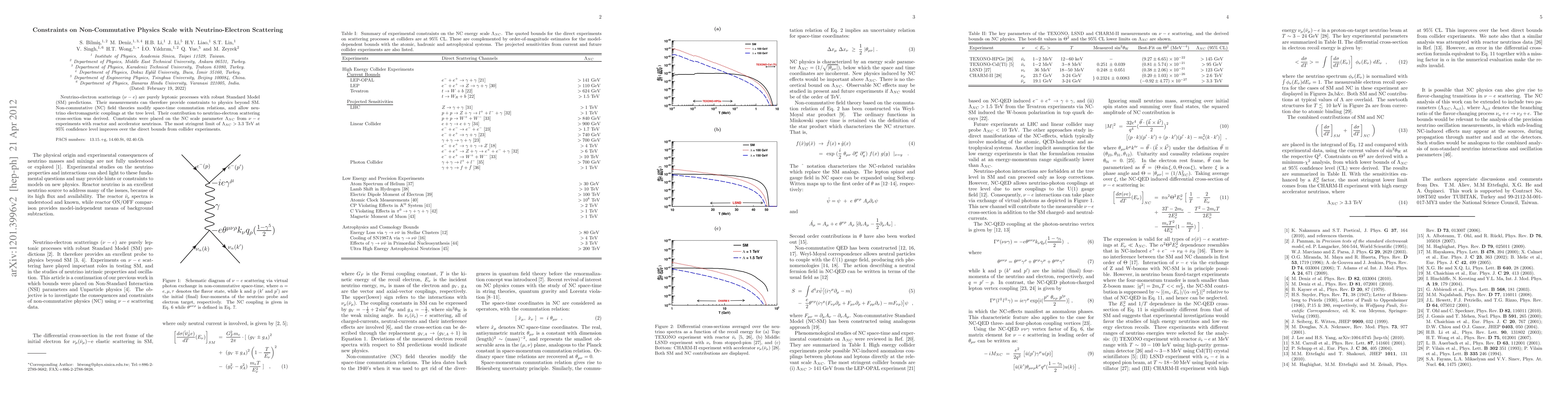 This paper derives the contribution of non-commutative field theories to neutrino-electron scattering and uses experimental data to place stringent constraints on the non-commutative physics scale, achieving a limit of $\Lambda_{NC} > 3.3 TeV$ at 95% confidence level, surpassing previous collider-based limits.