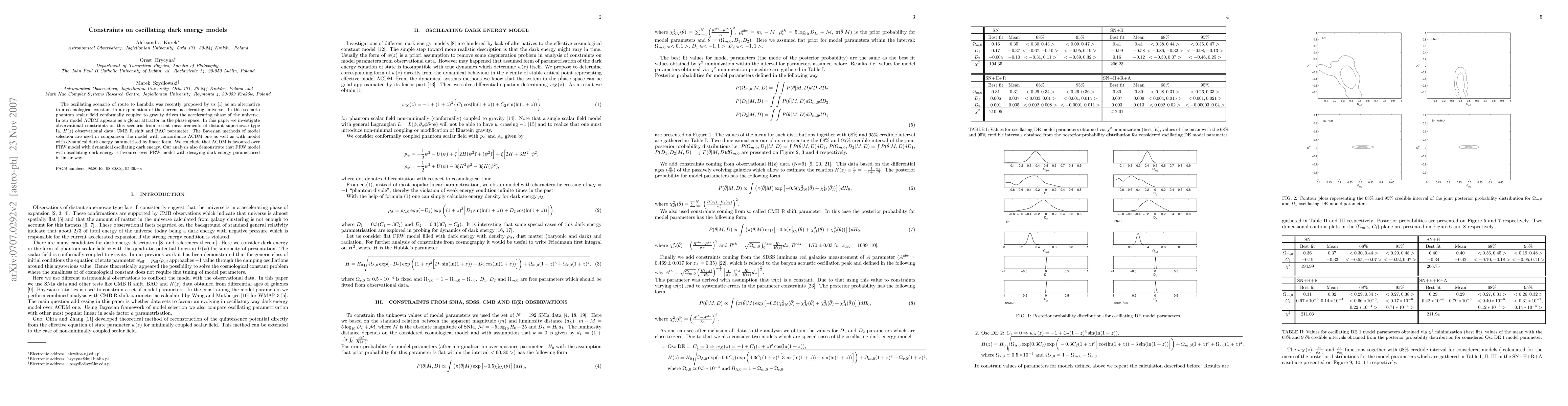 The oscillating scenario of route to Lambda was recently proposed by us arXiv:0704.1651 as an alternative to a cosmological constant in a explanation of the current accelerating universe. In this scenario phantom scalar field conformally coupled to gravity drives the accelerating phase of the universe. In our model $\Lambda$CDM appears as a global attractor in the phase space. In this paper we investigate observational constraints on this scenario from recent measurements of distant supernovae type Ia, CMB R shift, BAO and $H(z)$ observational data. The Bayesian methods of model selection are used in comparison the model with concordance $\Lambda$CDM one as well as with model with dynamical dark energy parametrised by linear form. We conclude that $\Lambda$CDM is favoured over FRW model with dynamical oscillating dark energy. Our analysis also demonstrate that FRW model with oscillating dark energy is favoured over FRW model with decaying dark energy parametrised in linear way.