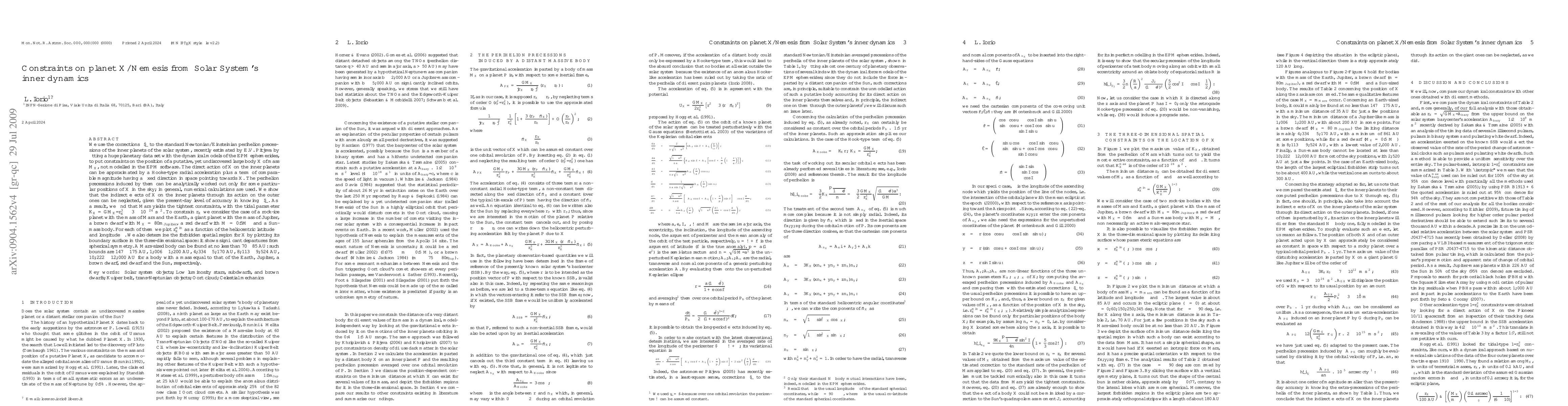 We put full 3D constraints on a putative planet X by using the dynamics of the inner planets of the solar system. In particular, we compute the mimium distance of X as a function of its heliocentric latitude and longitude for different values of its mass.