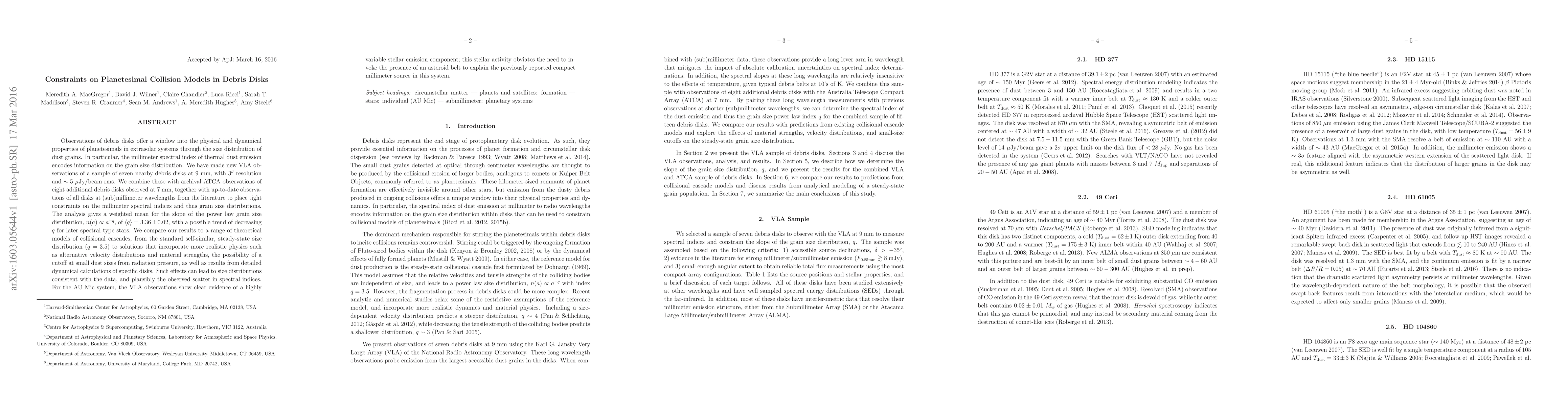 This paper uses new and archival millimeter observations to constrain the size distribution of planetesimals in debris disks, finding a weighted mean slope of $q = 3.36 \pm 0.02$. The results challenge standard collisional cascade models and suggest more complex dynamics, including stellar activity in AU Mic.