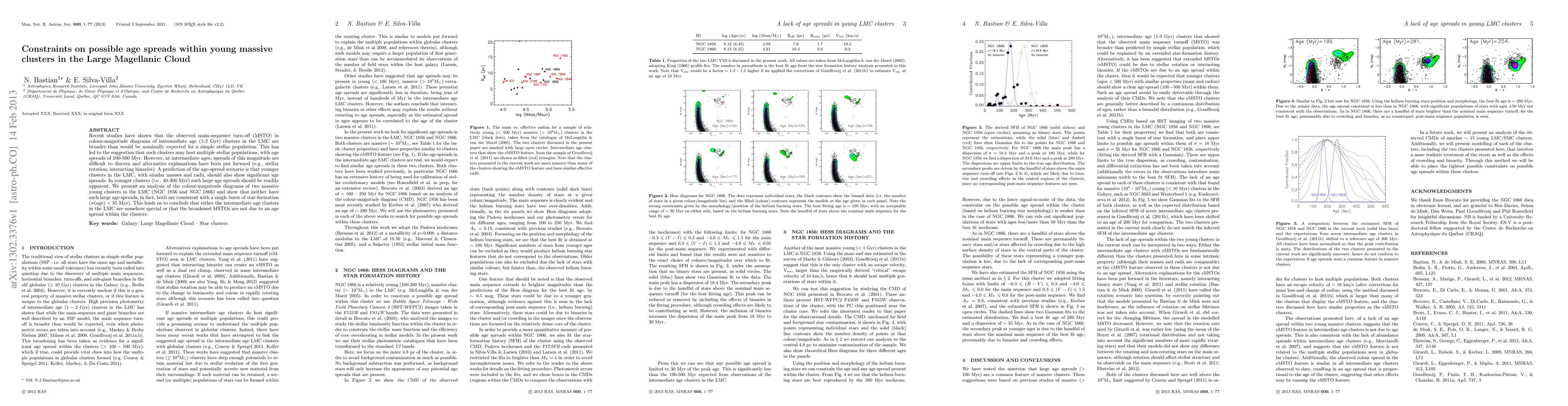 Recent studies have shown that the observed main-sequence turn-off (MSTO) in colour-magnitude diagrams of intermediate age (1-2 Gyr) clusters in the LMC are broader than would be nominally expected for a simple stellar population. This has led to the suggestion that such clusters may host multiple stellar populations, with age spreads of 100-500 Myr. However, at intermediate ages, spreads of this magnitude are difficult to discern and alternative explanations have been put forward (e.g., stellar rotation, interacting binaries). A prediction of the age-spread scenario is that younger clusters in the LMC, with similar masses and radii, should also show significant age spreads. In younger clusters (i.e., 40-300 Myr) such large age spreads should be readily apparent. We present an analysis of the colour-magnitude diagrams of two massive young clusters in the LMC (NGC 1856 and NGC 1866) and show that neither have such large age spreads, in fact, both are consistent with a single burst of star-formation (sigma(age) < 35 Myr). This leads us to conclude that either the intermediate age clusters in the LMC are somehow special or that the broadened MSTOs are not due to an age spread within the clusters.