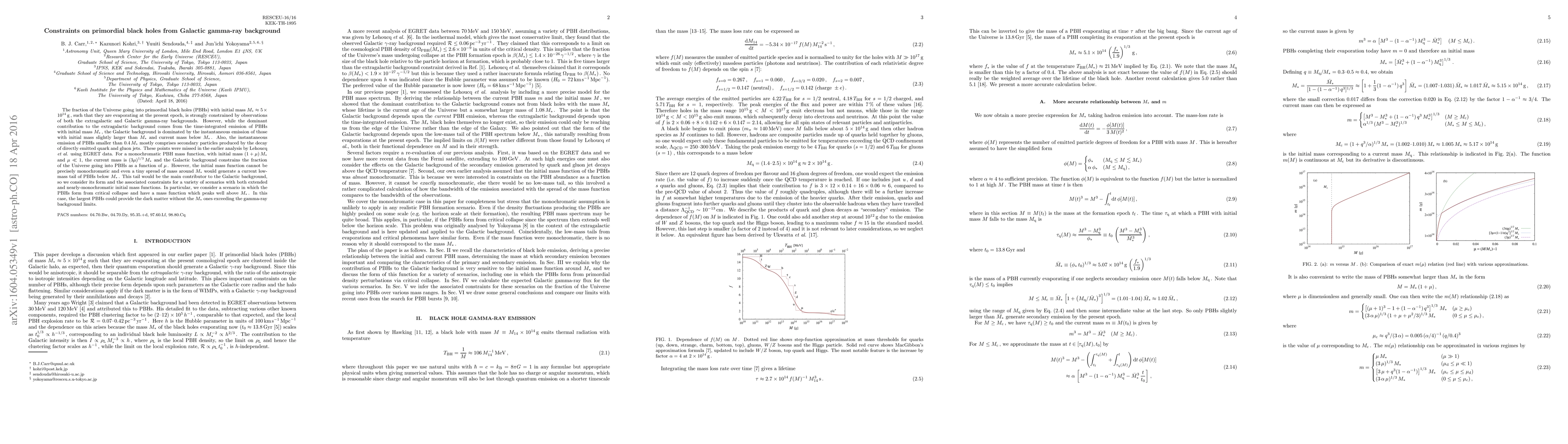 This paper constrains the fraction of primordial black holes (PBHs) contributing to the Galactic gamma-ray background, emphasizing the role of PBHs with initial mass M_* ≈ 5 × 10^14 g. It highlights that the Galactic background is dominated by the instantaneous emission from PBHs slightly larger than M_* and smaller than 0.4 M_*, which are mainly secondary particles from quark and gluon jets.