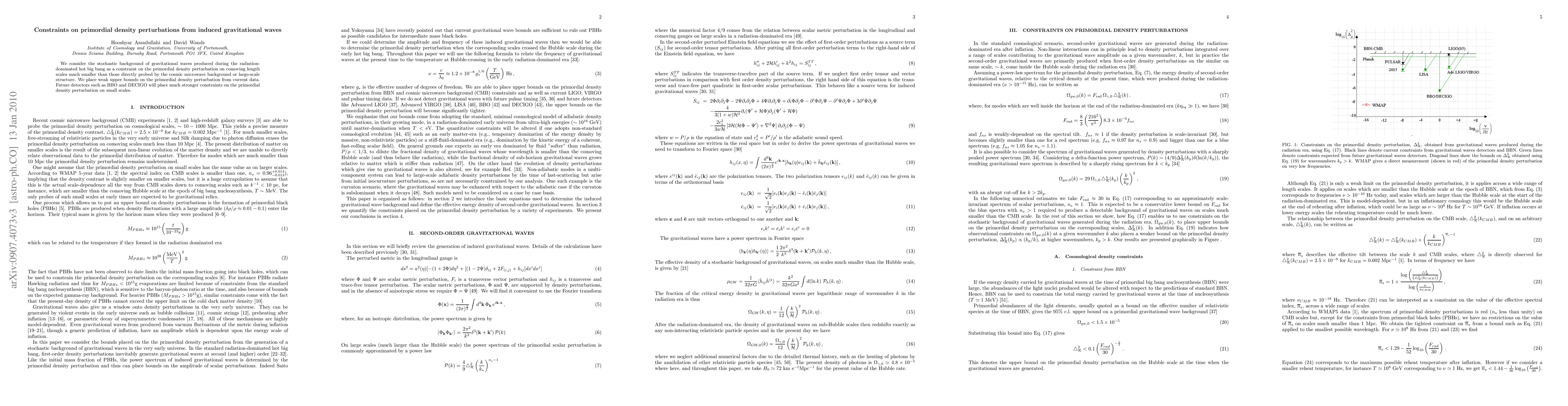 This paper examines gravitational waves from the early universe to constrain primordial density perturbations, finding weak upper limits from current data. Future detectors like BBO and DECIGO are expected to significantly strengthen these constraints on small scales.