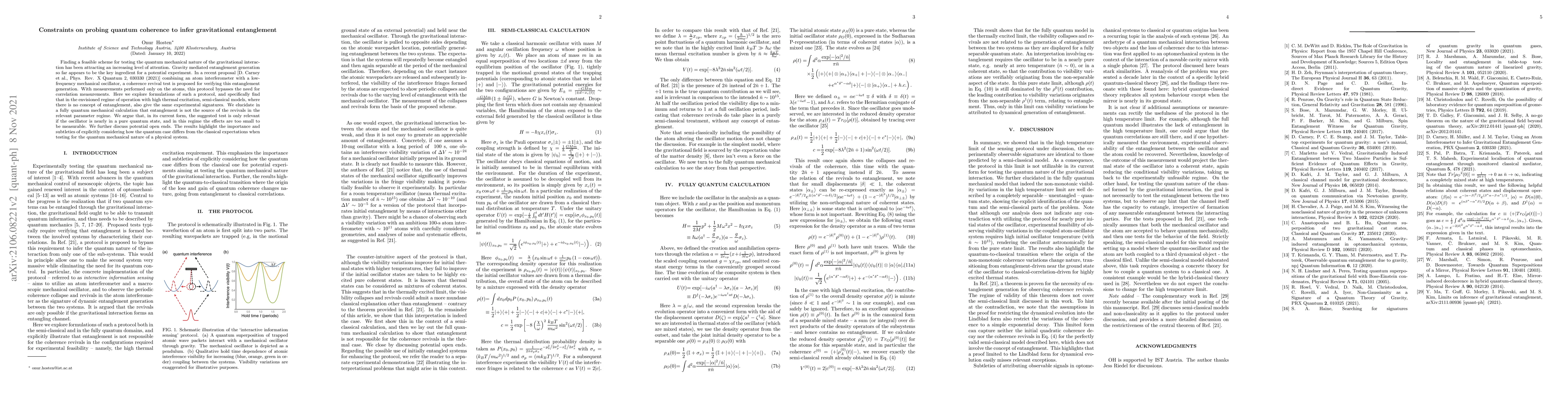 Researchers found that a proposed test for gravitational entanglement relies on semi-classical models rather than quantum mechanics, limiting its applicability. The study highlights the importance of considering the differences between classical and quantum expectations when testing for the quantum nature of physical systems.