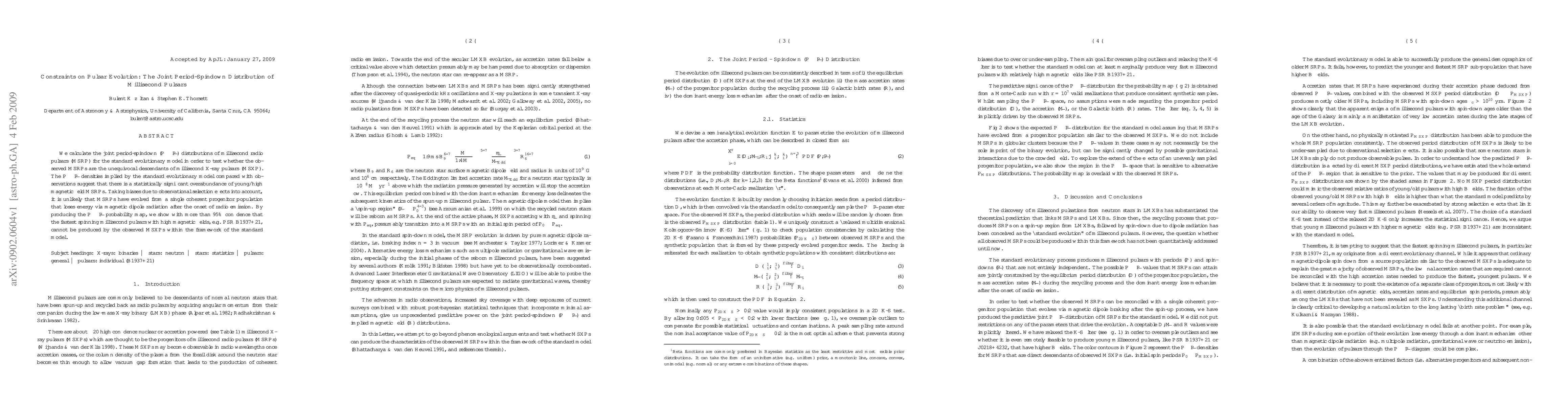 This paper examines the joint period-spindown distribution of millisecond pulsars to test their evolutionary origins, finding a significant overabundance of young pulsars with high magnetic fields. The analysis suggests that these pulsars likely did not evolve from a single progenitor population, as the fastest spinning pulsars cannot be produced by the observed millisecond X-ray pulsars under the standard evolutionary model.