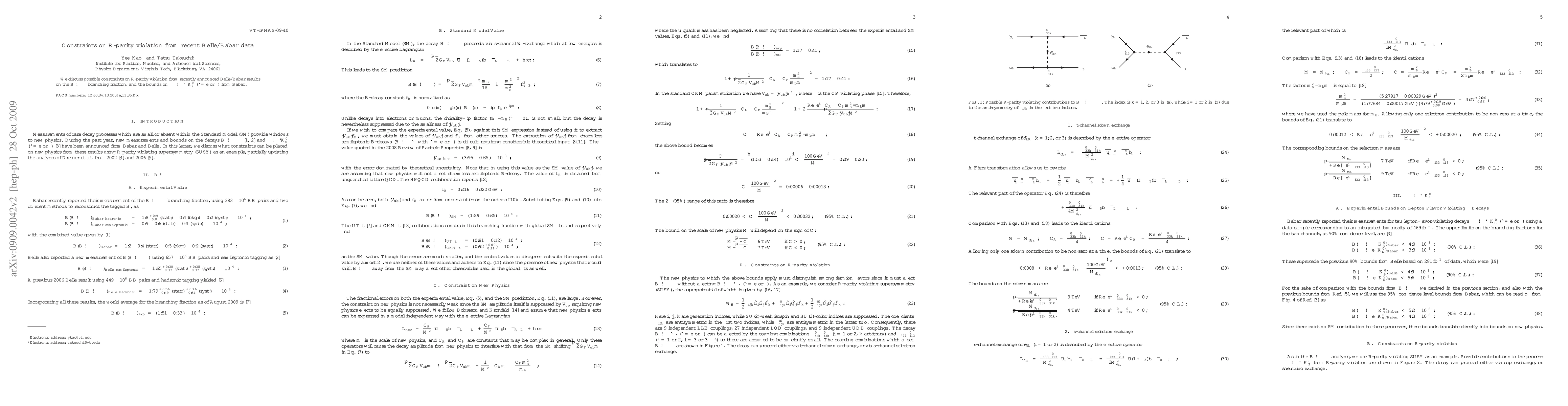 This paper examines constraints on R-parity violation using recent Belle/Babar data, focusing on the B\to\tau\nu branching fraction and decay bounds of \tau^-\to\ell^- K_S^0 (\ell=e or \mu) to derive implications for supersymmetry models.