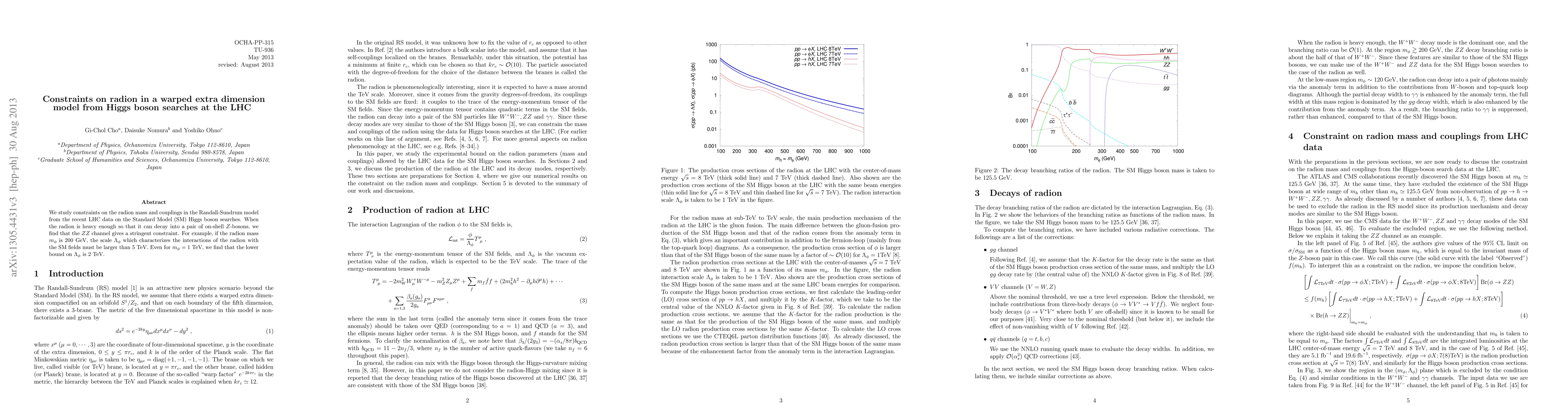 We study constraints on the radion mass and couplings in the Randall-Sundrum model from the recent LHC data on the Standard Model (SM) Higgs boson searches. When the radion is heavy enough so that it can decay into a pair of on-shell Z-bosons, we find that the ZZ channel gives a stringent constraint. For example, if the radion mass m_\phi is 200 GeV, the scale \Lambda_\phi which characterizes the interactions of the radion with the SM fields must be larger than 5 TeV. Even for m_\phi=1 TeV, we find that the lower bound on \Lambda_\phi is 2 TeV.