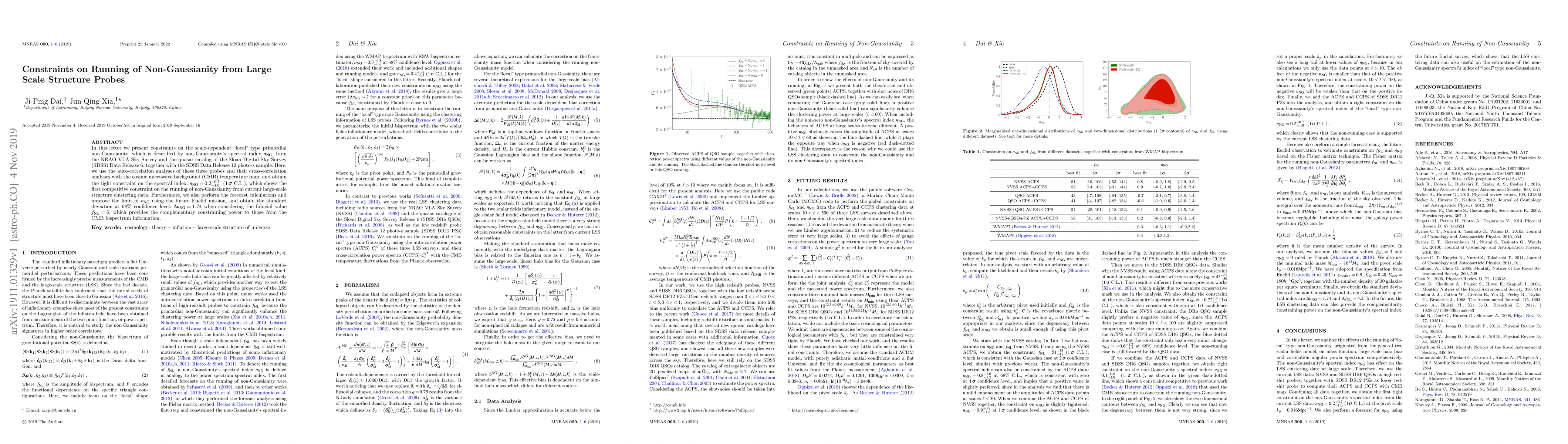 In this letter we present constraints on the scale-dependent "local" type primordial non-Gaussianity, which is described by non-Gaussianity's spectral index $n_{\rm NG}$, from the NRAO VLA Sky Survey and the quasar catalog of the Sloan Digital Sky Survey (SDSS) Data Release 6, together with the SDSS Data Release 12 photo-z sample. Here, we use the auto-correlation analyses of these three probes and their cross-correlation analyses with the cosmic microwave background (CMB) temperature map, and obtain the tight constraint on the spectral index: $n_{\rm NG}=0.2 ^{+0.7}_{-1.0}$ ($1\,\sigma$ C.L.), which shows the first competitive constraint on the running of non-Gaussianity from current large-scale structure clustering data. Furthermore, we also perform the forecast calculations and improve the limit of $n_{\rm NG}$ using the future Euclid mission, and obtain the standard deviation at 68\% confidence level: $\Delta n_{\rm NG}=1.74$ when considering the fiducial value $f_{\rm NL}=3$, which provides the complementary constraining power to those from the CMB bispectrum information.