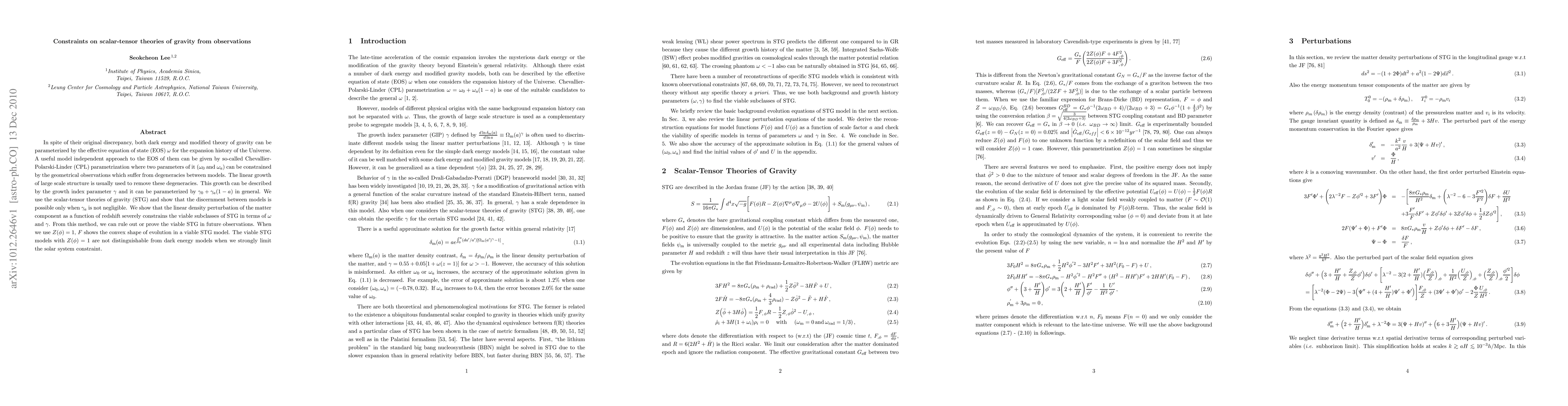 Research constraints scalar-tensor gravity theories using observations of dark energy and large-scale structure growth, finding viable models distinguishable from dark energy only when certain parameters are non-negligible.