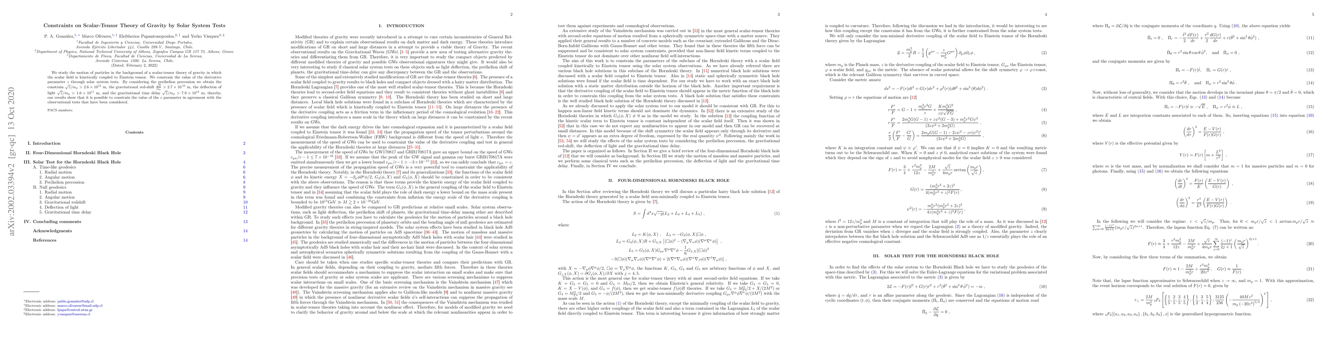 This paper examines scalar-tensor gravity with a kinetically coupled scalar field and constrains the parameter $z$ using solar system tests. Results show that $\sqrt{z}/m_p$ must exceed several large values (e.g., $2.6 \times 10^{12}$ m for perihelion precession), indicating consistency with observational data.
