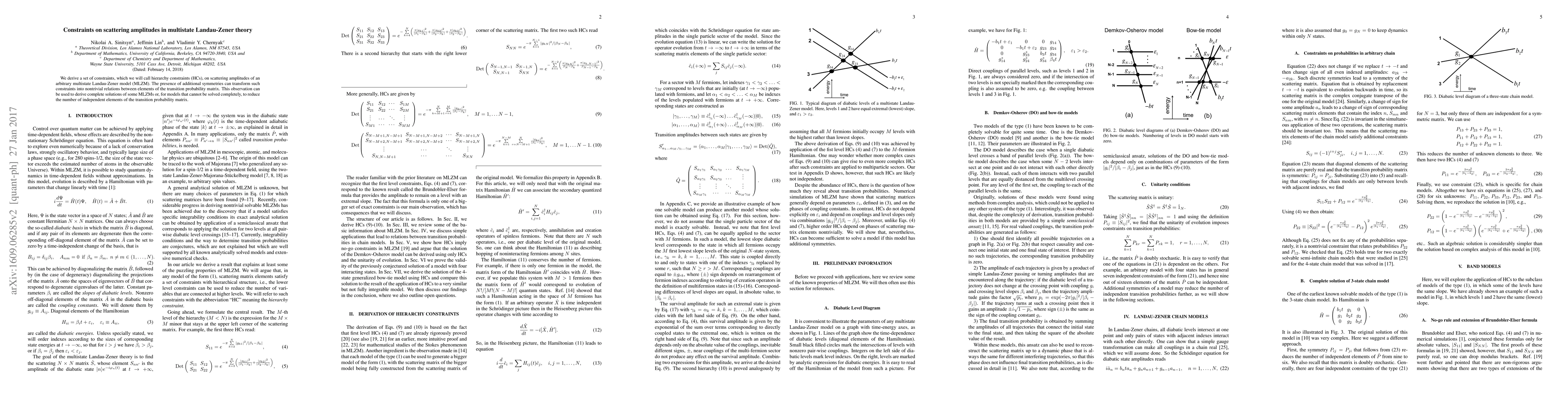 We derive a set of constraints, which we will call hierarchy constraints (HCs), on scattering amplitudes of an arbitrary multistate Landau-Zener model (MLZM). The presence of additional symmetries can transform such constraints into nontrivial relations between elements of the transition probability matrix. This observation can be used to derive complete solutions of some MLZMs or, for models that cannot be solved completely, to reduce the number of independent elements of the transition probability matrix.