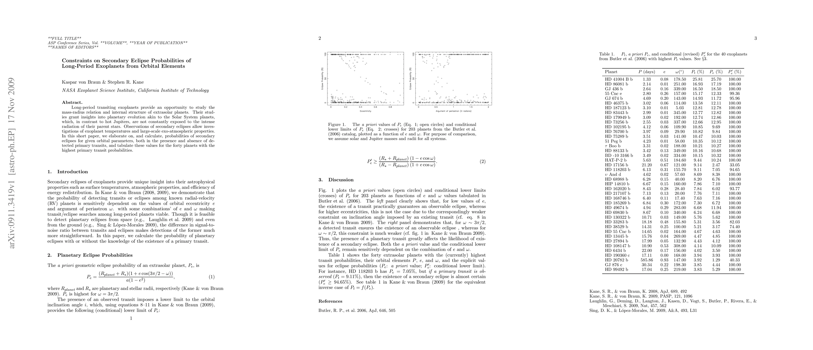 The study introduces a new approach to calculating probabilities of secondary eclipses using orbital elements.