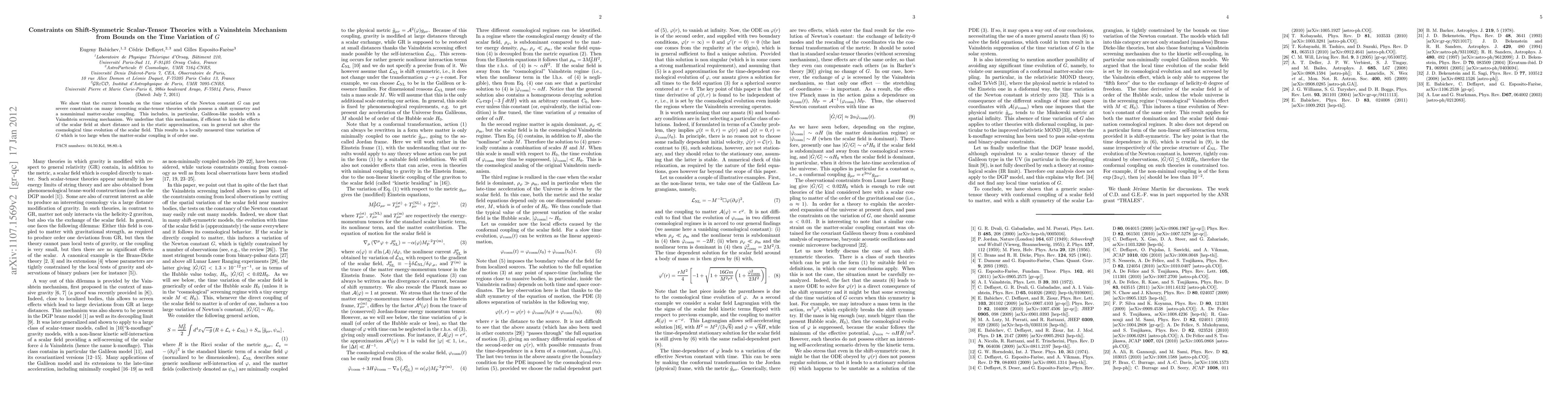 This paper demonstrates that current limits on the time variation of the gravitational constant G impose stringent constraints on shift-symmetric scalar-tensor theories, including Galileon models with Vainshtein screening. Despite the Vainshtein mechanism's effectiveness at short distances, it cannot alter the cosmological evolution of the scalar field, leading to a locally measured time variation of G that exceeds current bounds.