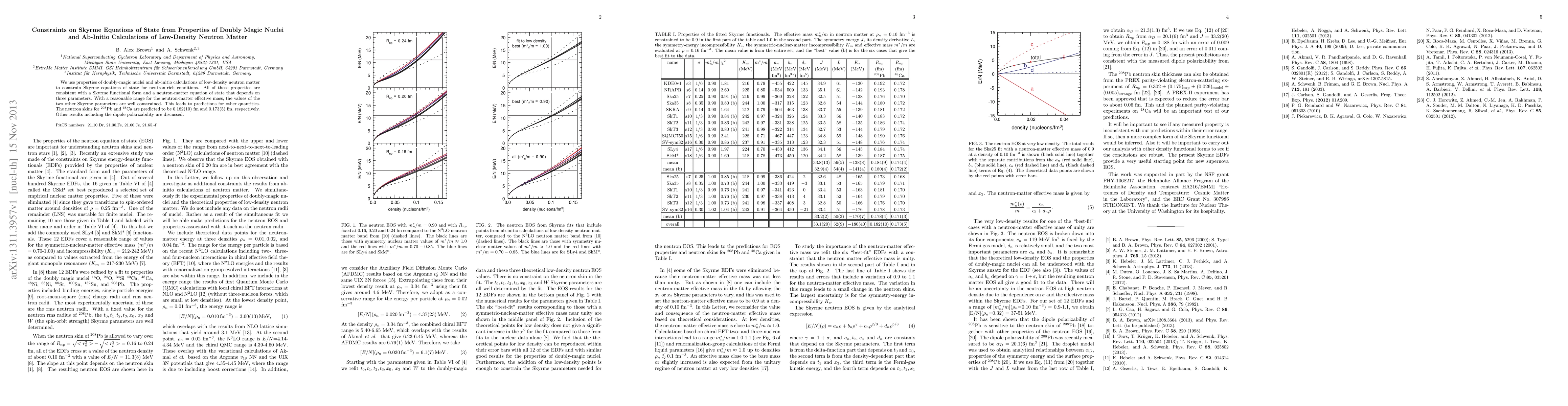 This paper constrains Skyrme equations of state for neutron-rich conditions using properties of doubly-magic nuclei and ab-initio calculations of low-density neutron matter, leading to predictions for neutron skins and dipole polarizability for specific nuclei. The study finds that the neutron skins for $^{208}$Pb and $^{48}$Ca are 0.182(10) fm and 0.173(5) fm, respectively.