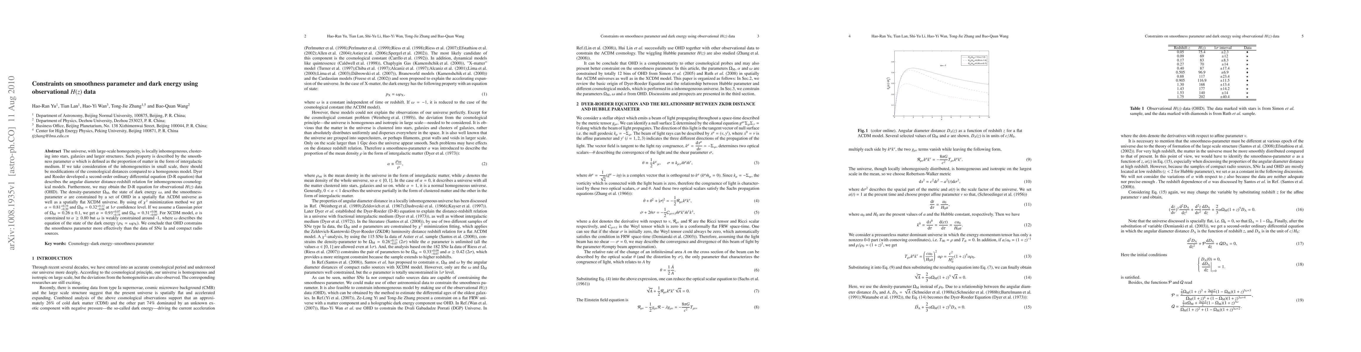Research uses observational $H(z)$ data to constrain the smoothness parameter $ heta$ and dark energy in the universe, finding that it is better constrained than other types of data.