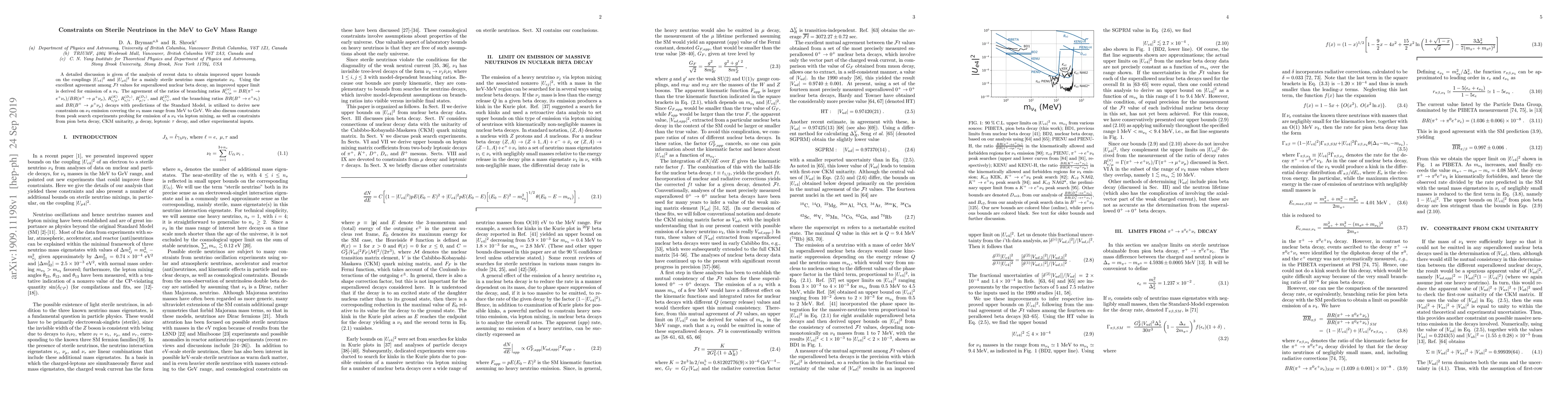 Researchers set new limits on the existence of a sterile neutrino with mass between 1 MeV and 1 GeV, constraining its interactions in various decays and searches.