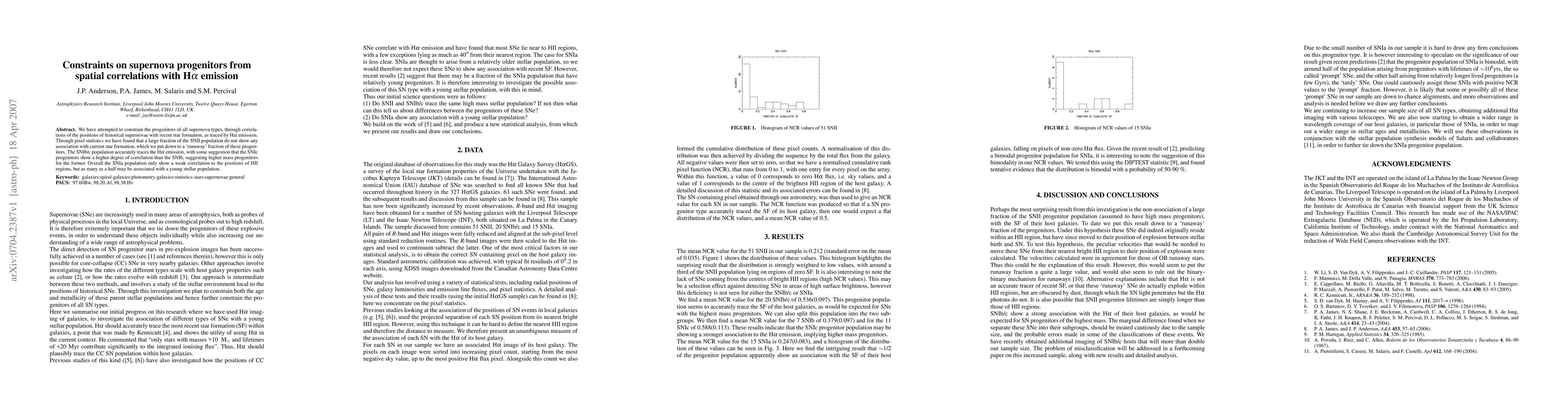 We have attempted to constrain the progenitors of all supernova types, through correlations of the positions of historical supernovae with recent star formation, as traced by H-alpha emission. Through pixel statistics we have found that a large fraction of the SNII population do not show any association with current star formation, which we put down to a 'runaway' fraction of these progenitors. The SNIb/c population accurately traces the H-alpha emission, with some suggestion that the SNIc progenitors show a higher degree of correlation than the SNIb, suggesting higher mass progenitors for the former. Overall the SNIa population only show a weak correlation to the positions of HII regions, but as many as a half may be associated with a young stellar population.