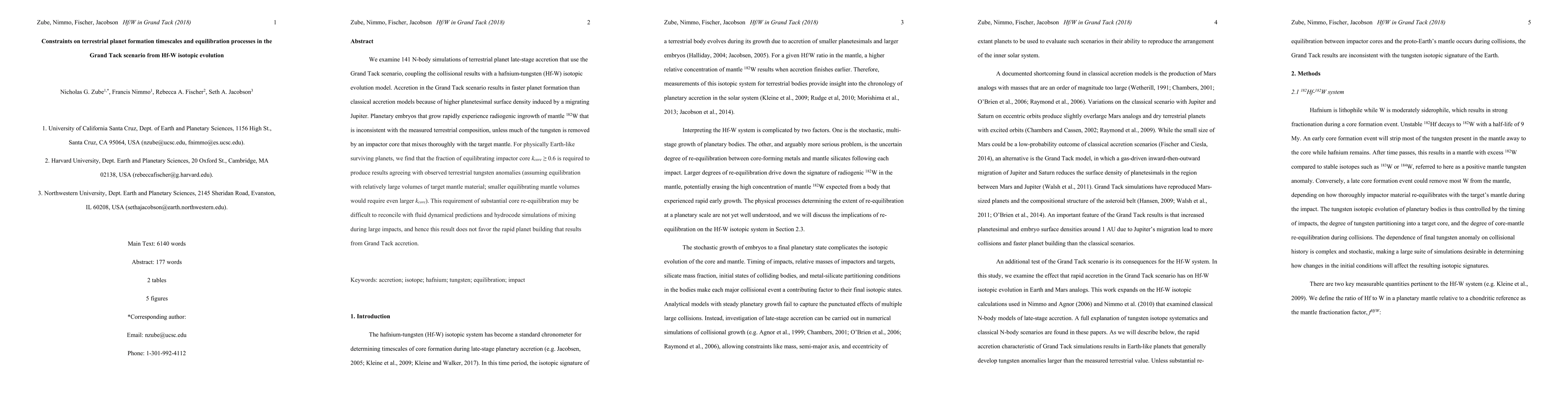 This study uses Hf-W isotopic evolution to analyze 141 N-body simulations of the Grand Tack scenario for terrestrial planet formation, finding that rapid formation leads to inconsistencies with terrestrial tungsten anomalies unless a significant fraction of the impactor core is removed and re-equilibrated. The required core re-equilibration fraction ($k_\text{core} \geq 0.6$) challenges predictions from fluid dynamics and hydrocode simulations.