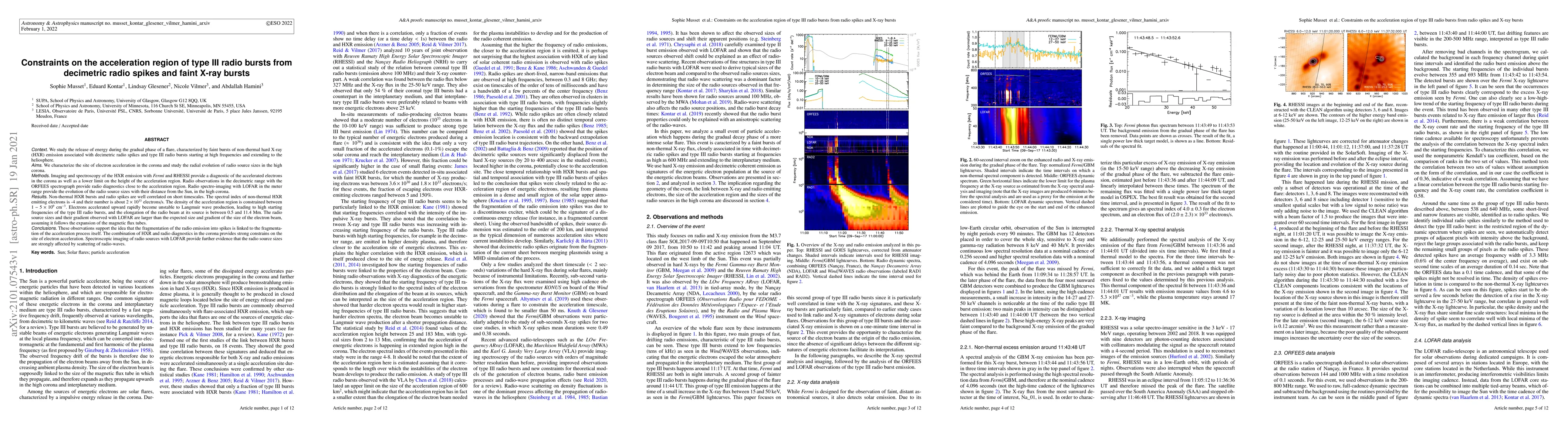 Research reveals constraints on electron acceleration in solar flares, suggesting a density range of 1-5 x 10^9 cm^-3 and indicating that radio bursts originate from the high corona.