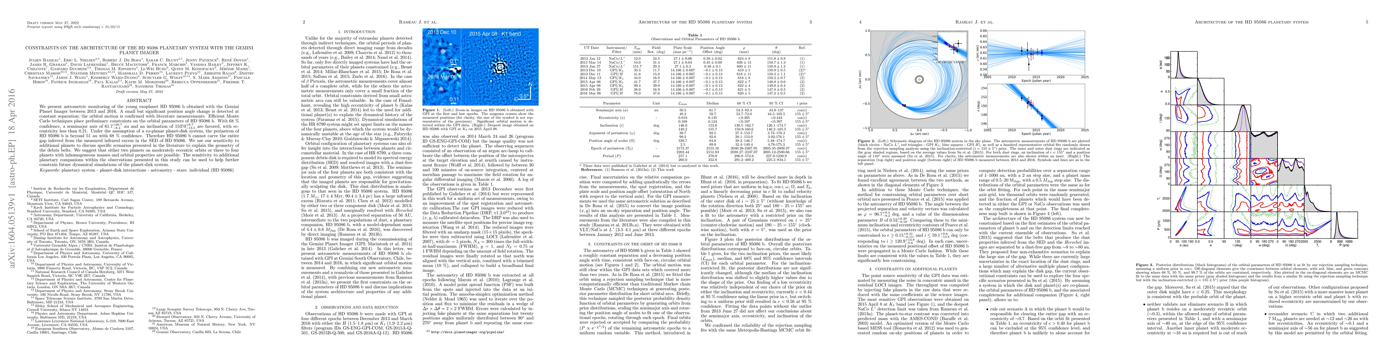 We present astrometric monitoring of the young exoplanet HD 95086 b obtained with the Gemini Planet Imager between 2013 and 2016. A small but significant position angle change is detected at constant separation; the orbital motion is confirmed with literature measurements. Efficient Monte Carlo techniques place preliminary constraints on the orbital parameters of HD 95086 b. With 68% confidence, a semimajor axis of 61.7^{+20.7}_{-8.4} au and an inclination of 153.0^{+9.7}_{-13.5} deg are favored, with eccentricity less than 0.21. Under the assumption of a co-planar planet-disk system, the periastron of HD 95086 b is beyond 51 au with 68% confidence. Therefore HD 95086 b cannot carve the entire gap inferred from the measured infrared excess in the SED of HD 95086. We use our sensitivity to additional planets to discuss specific scenarios presented in the literature to explain the geometry of the debris belts. We suggest that either two planets on moderately eccentric orbits or three to four planets with inhomogeneous masses and orbital properties are possible. The sensitivity to additional planetary companions within the observations presented in this study can be used to help further constrain future dynamical simulations of the planet-disk system.