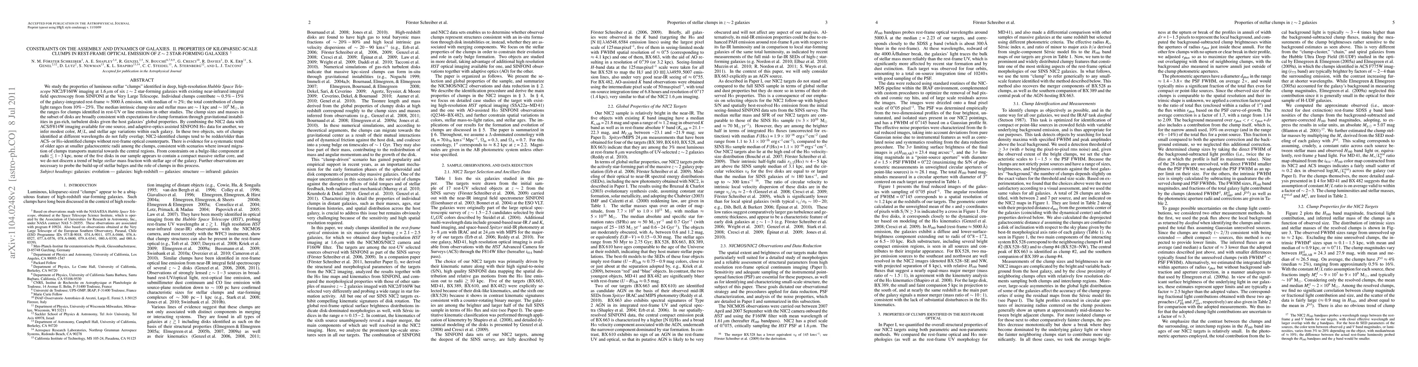 This study investigates luminous stellar clumps in six z~2 star-forming galaxies, finding they contribute 10%-25% of the total rest-frame optical emission. The clumps exhibit sizes and masses consistent with gravitational instability formation in gas-rich disks, and show variations in color, stellar mass-to-light ratio, and age, suggesting inward migration of clumps.