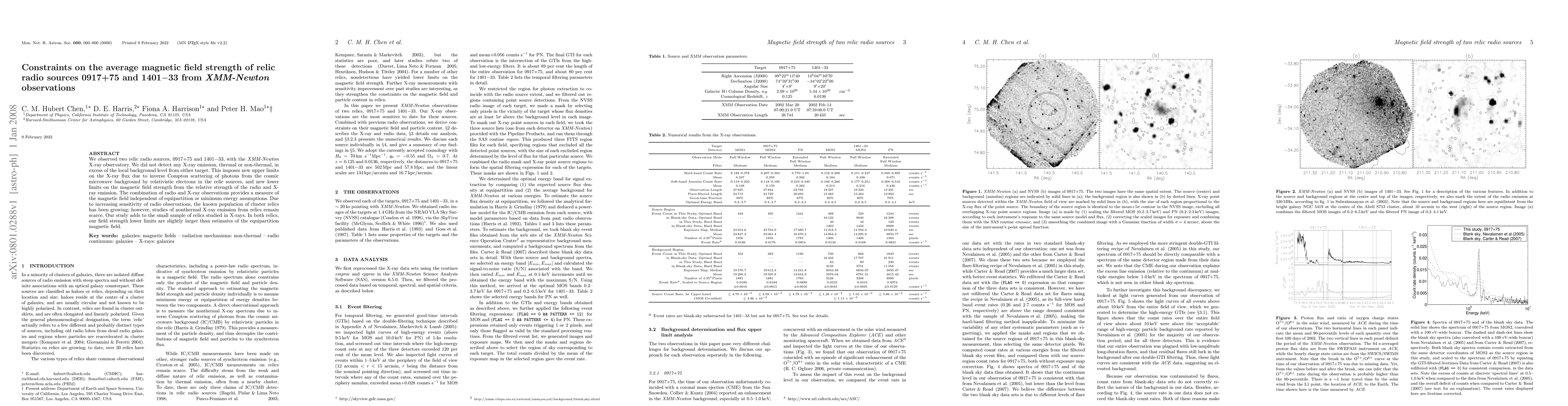 New XMM-Newton observations impose upper limits on X-ray flux from relic radio sources 0917+75 and 1401-33, providing independent constraints on magnetic field strength.