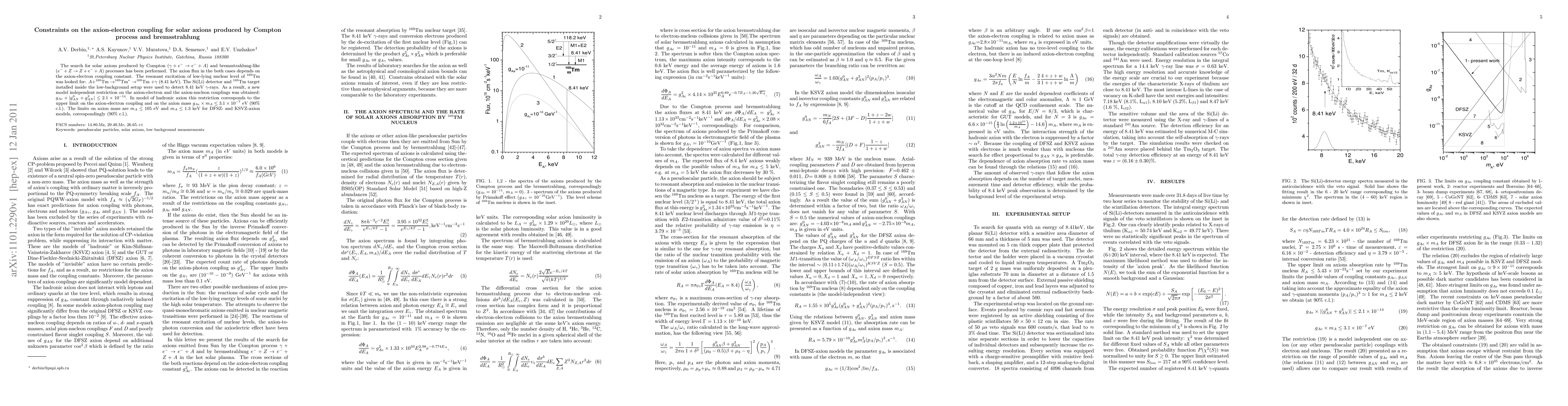 This paper investigates solar axions produced via Compton and bremsstrahlung processes, using a low-background setup with a Si(Li) detector and $^{169}$Tm target to search for 8.41 keV gamma rays. It establishes a new model-independent constraint on the axion-electron coupling: $g_{Ae}\times|g^0_{AN}+ g^3_{AN}|\leq 2.1\times10^{-14}$, and provides upper limits on axion mass and coupling in different axion models.