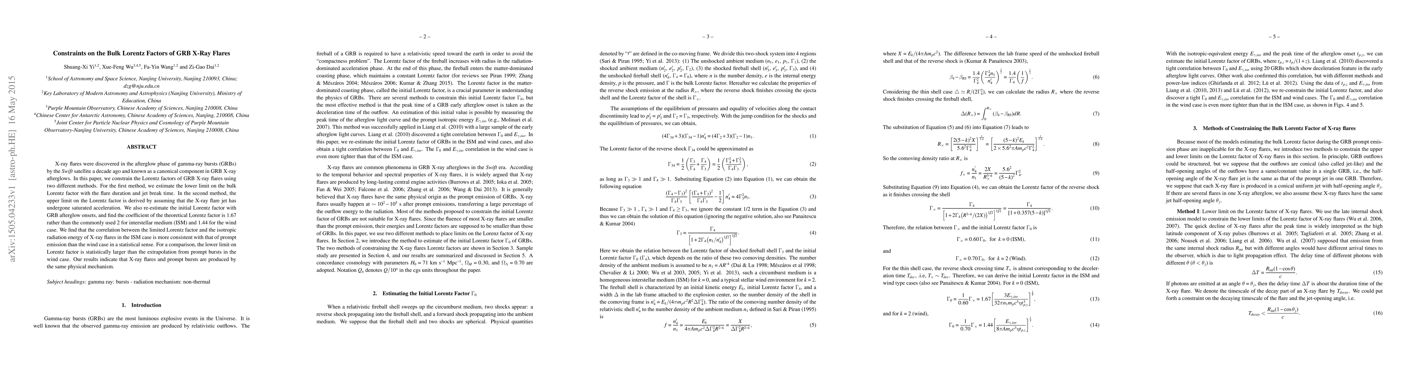 The paper presents novel methods for constraining Lorentz factors of GRB X-ray flares, re-estimating initial Lorentz factors, and comparing them with prompt emission characteristics.